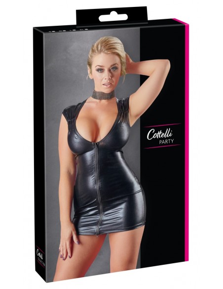 Con questo mini abito nero di Cottelli PARTY in lucido wet look, i beni femminili sono abilmente messi in primo piano! Tagliato aderente, l'abito corto non solo ispira con una profonda scollatura sul davanti, ma anche con una zip a 2 vie che aspetta solo di essere aperta....