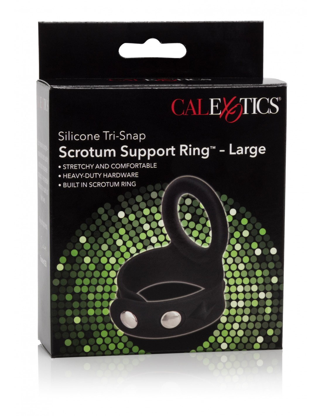 Estendi la tua soddisfazione con il resistente anello di supporto dello scroto in silicone Tri-Snap. L'anello di erezione sensuale è progettato per sostenere la resistenza, mantenere un'erezione dura come una roccia e prolungare il piacere intimo. L'anello per il pene ultra elastico e completamente regolabile è facile da usare, comodo da indossare ed è ideale per utenti principianti ed esperti. L'anello di grandi dimensioni è realizzato in silicone super morbido, spesso e ultra elastico, privo di ftalati, inodore e garantisce una vestibilità comoda e completamente regolabile. Il supporto per l'erezione con design a tre scatti è dotato di hardware resistente e privo di nichel e un anello di supporto integrato elastico. Per aumentare la sensibilità, usa sempre un lubrificante di qualità con questo giocattolo. Prima e dopo l'uso, pulire l'anello di supporto con acqua e sapone neutro o uno spray detergente per giocattoli.