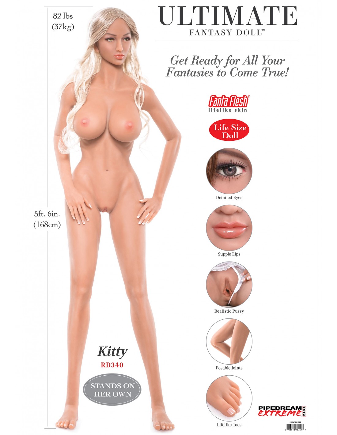 Le lunghe ciocche bionde di Kitty solleticheranno e stuzzicheranno, e i suoi splendidi occhi verdi ti conquisteranno. Apri le sue tenere labbra per sperimentare l'ultima fantasia orale, o avvolgi le sue dita delicate e snodabili e le unghie dipinte attorno alla tua spessa verga del piacere. I suoi seni sodi e sodi stanno aspettando una spagnoletta, mentre il suo culo perfetto è piacevolmente aderente e desideroso di compiacere. Alta poco più di un metro e mezzo, Kitty soddisferà sicuramente ogni tua fantasia con i suoi occhi intricati, le labbra morbide, la figa realistica, le articolazioni snodabili e le dita dei piedi realistiche. Tutto il suo corpo è sostenuto da uno scheletro in acciaio inossidabile super resistente che presenta articolazioni mobili e pieghevoli proprio come una vera donna! Mettila in qualsiasi posizione ti venga in mente, vestila con la tua lingerie o bikini preferito, spruzza il tuo profumo preferito su tutti i suoi vestiti e assicurati di inviare foto che ci mostrino quanto è bella! Kitty è tutto tuo per divertirti e pronto a soddisfare tutte le tue ultime fantasie!