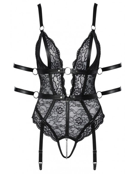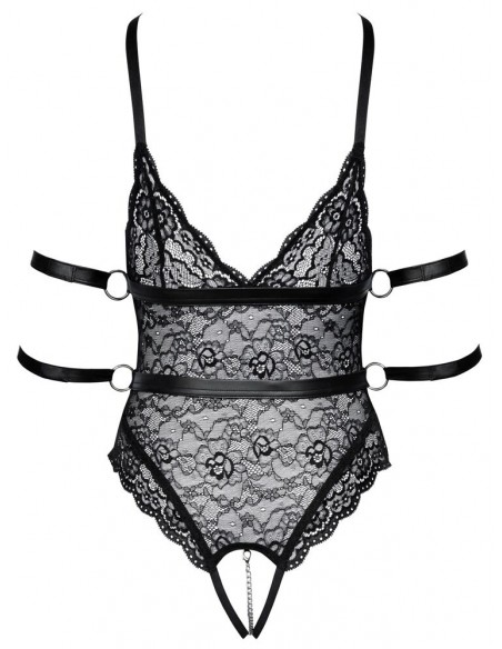 Body in pizzo con 2 bretelle rimovibili e 4 cinturini alla caviglia. L