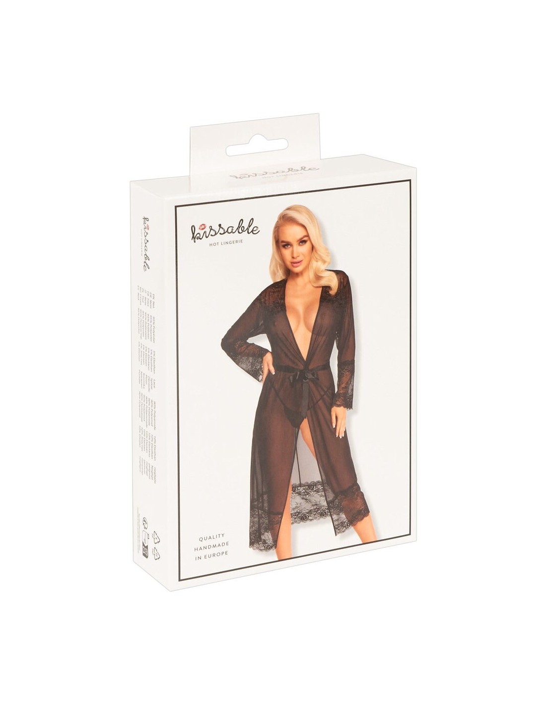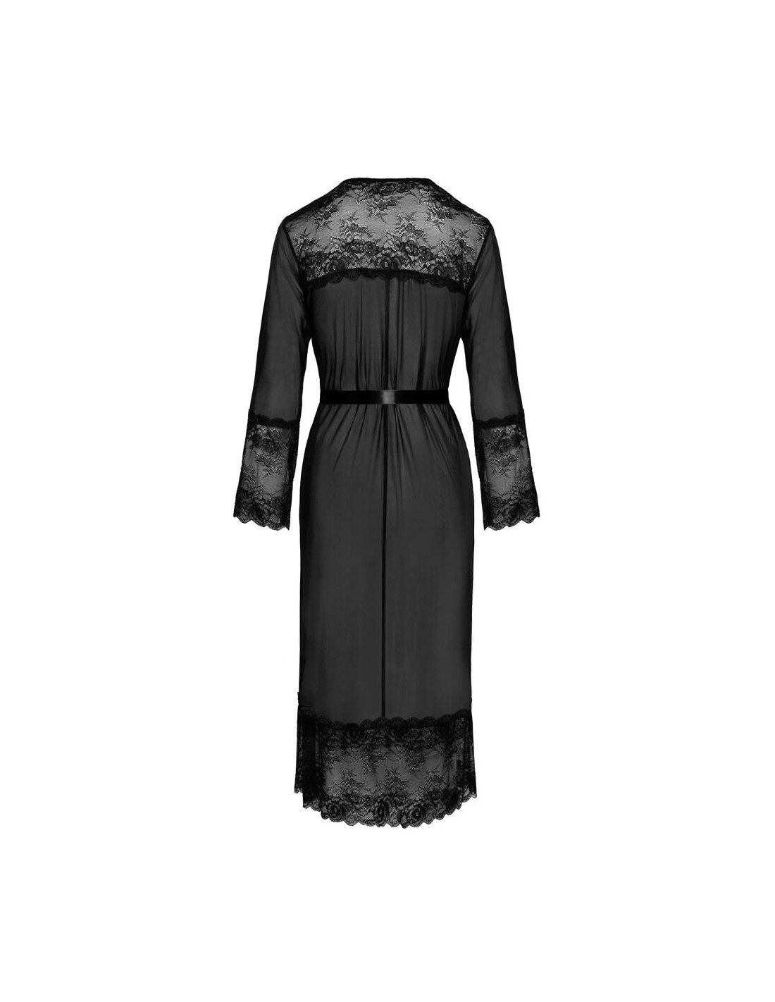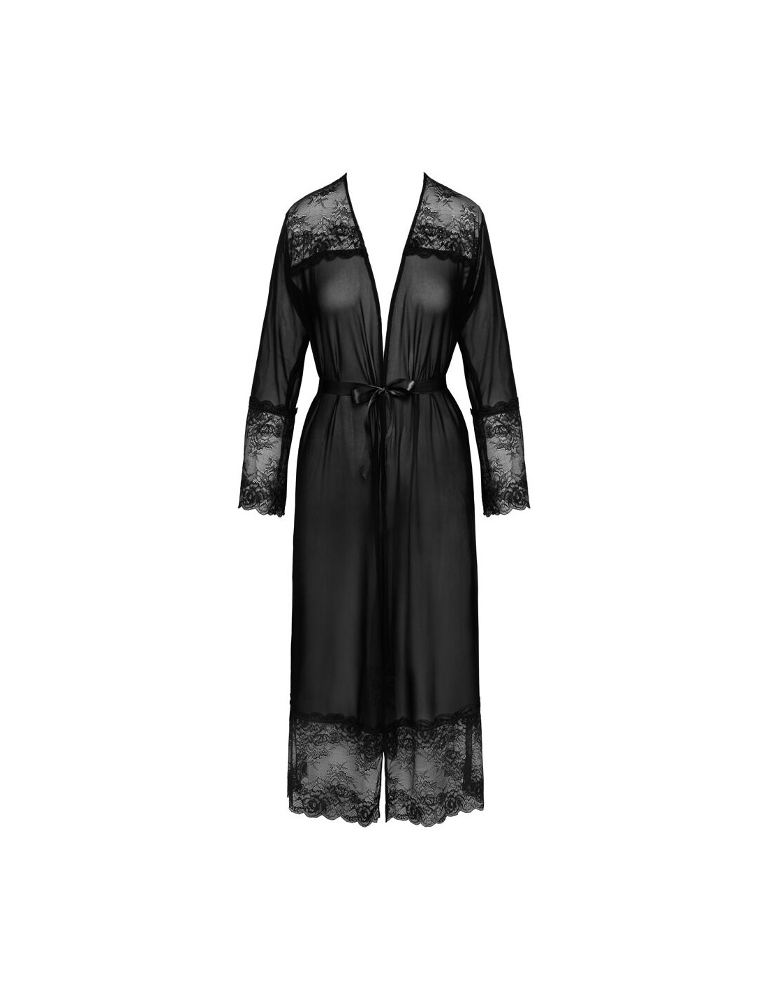 Kimono lungo di Kissable realizzato in pregiato powernet con eleganti inserti in pizzo sulle spalle, sulle maniche lunghe e sull'orlo. Morbido ed elastico su tutto il perimetro per il massimo comfort. Con cintura da annodare in raso.