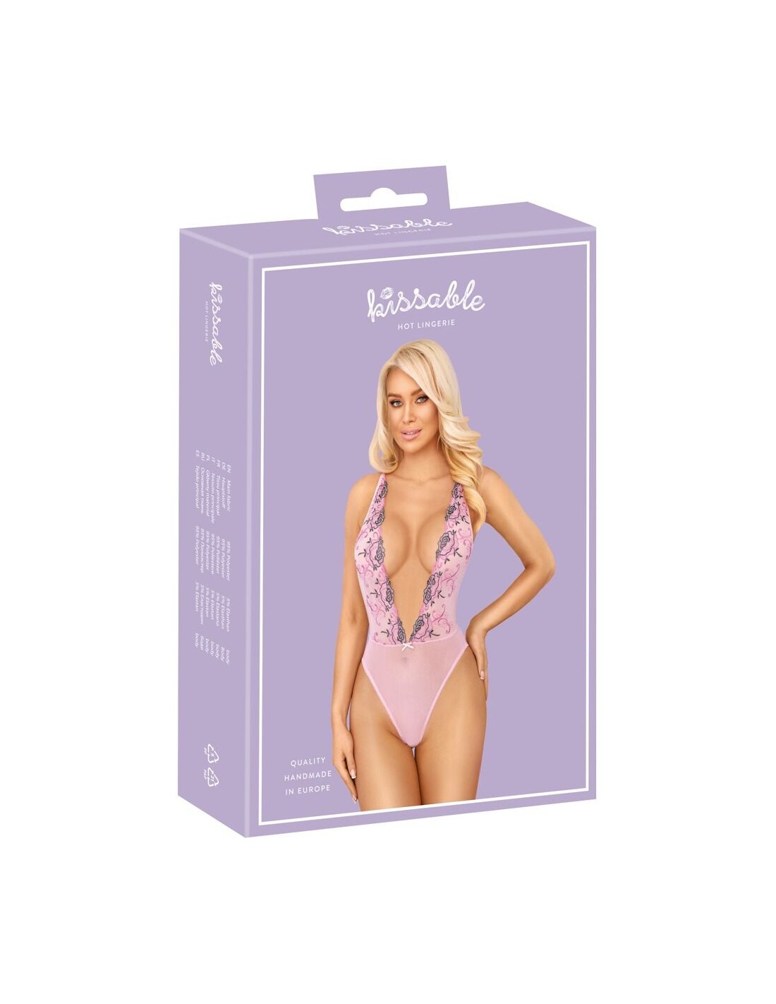 Body extra scollato di Kissable, realizzato in pregiato powernet rosé con intricati ricami floreali tono su tono. Morbido ed elastico su tutta la superficie per il massimo comfort. Le spalline regolabili si incrociano sulla schiena.
