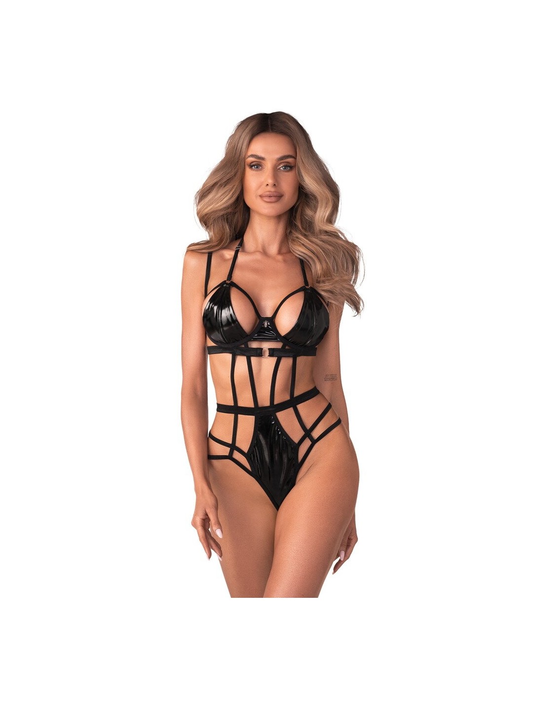 Body perizoma Keira Lise nero di Obsessive con un accattivante look a strap. Le morbide spalline elasticizzate sono elegantemente combinate con anelli decorativi e inserti in vernice lucida. Il collo e le spalline sono regolabili, così come la chiusura a gancio sul retro. Il cinturino in vita è dotato di una chiusura sul retro.