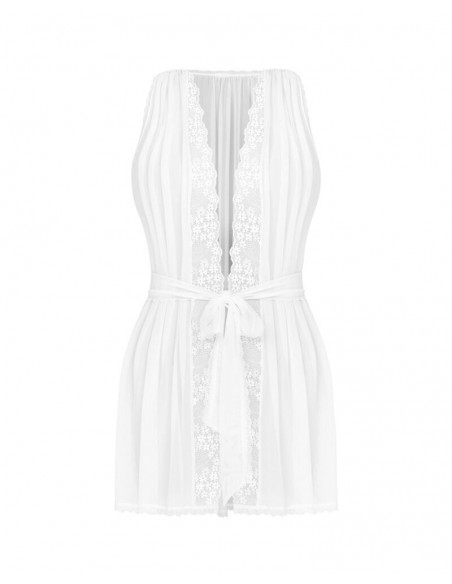Kimono Bianco in tessuto trasparente e splendide rifiniture in pizzo M/L