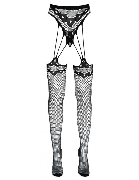 Perizoma inguinale di Cottelli LEGWEAR con calze intrecciate in morbida rete coccolosa con raffinati dettagli in pizzo. Calze con punta rinforzata. Aperta in modo invitante sul cavallo. Il tutto realizzato senza cuciture e altamente elastico per un perfetto comfort di vestibilità.