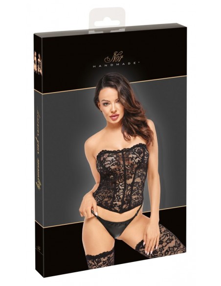 Corsetto senza spalline Libido Exclusive di Noir realizzato interamente in morbido pizzo. Morbido ed elasticizzato su tutta la superficie per una vestibilità sicura e un elevato comfort. Con asta modellante integrata sul davanti.