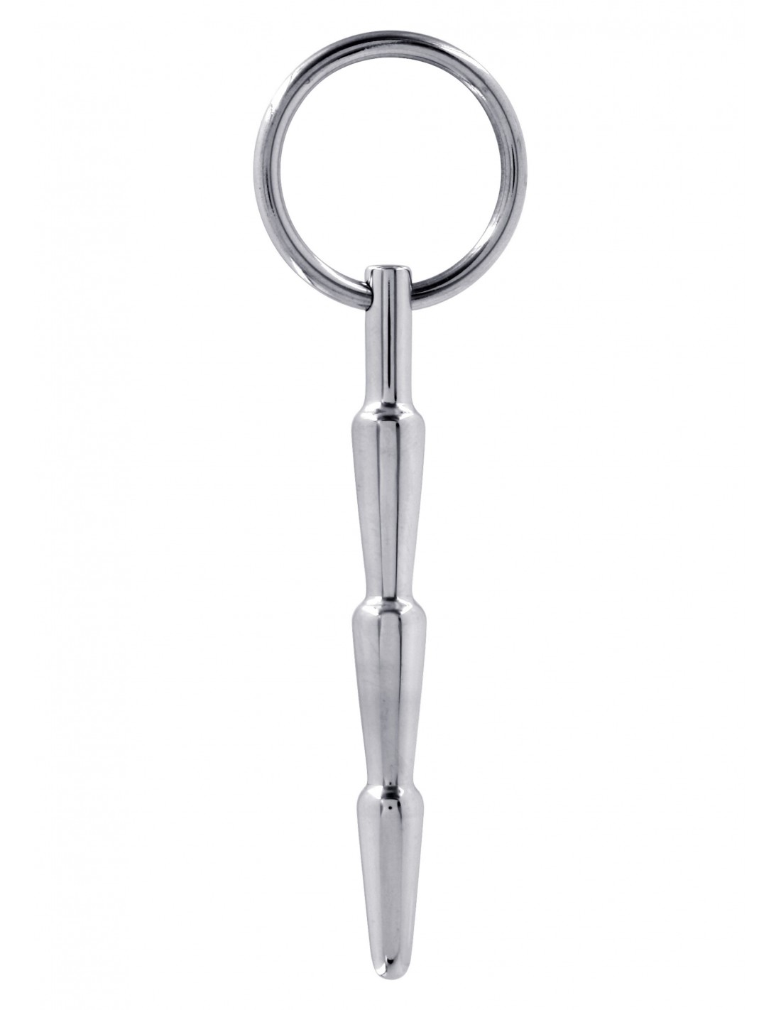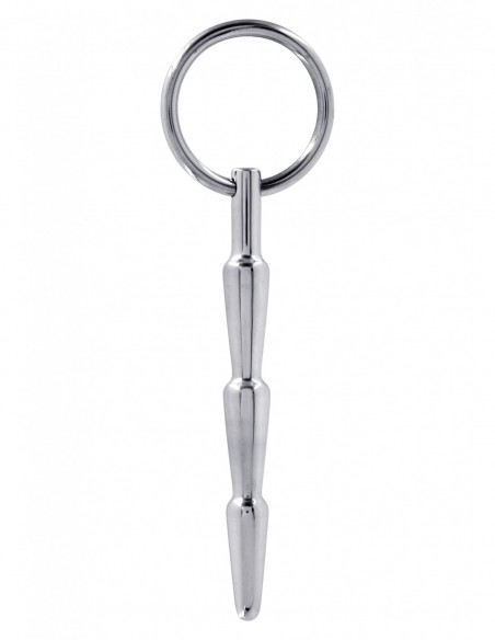 Un Penisplug tanto estremo quanto piacevole. Si inserisce nell?uretra del pene andnando in profondit il suo anello permette un facile recupero creando anche un effetto popping attraverso le leggeri bombature. Lungo 70 mm con un diametro che va dai 6 agli 8 mm. in acciaio medicale.