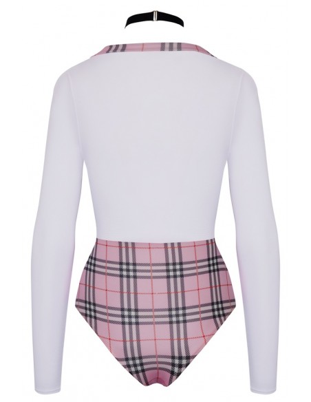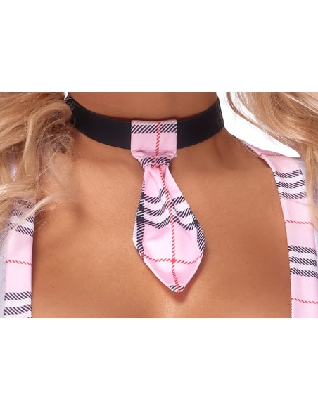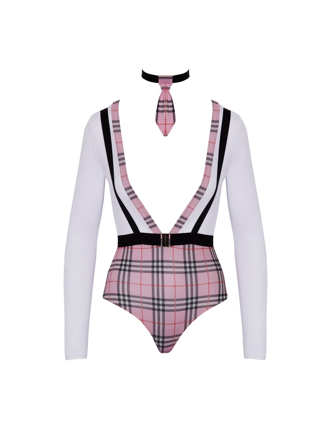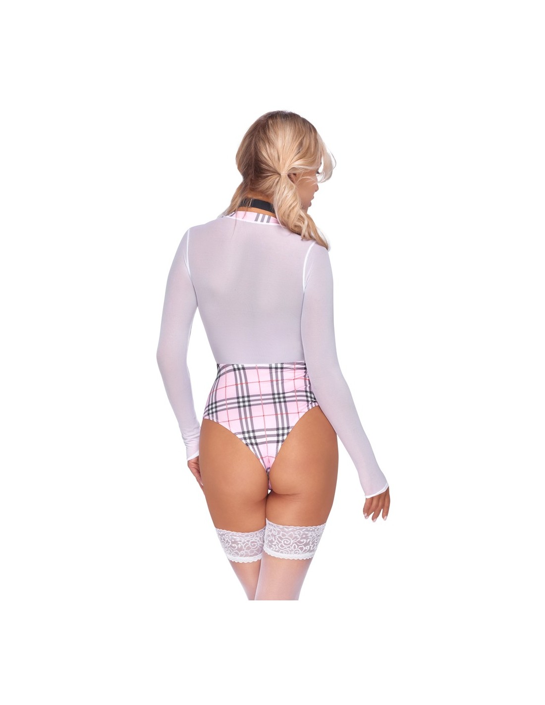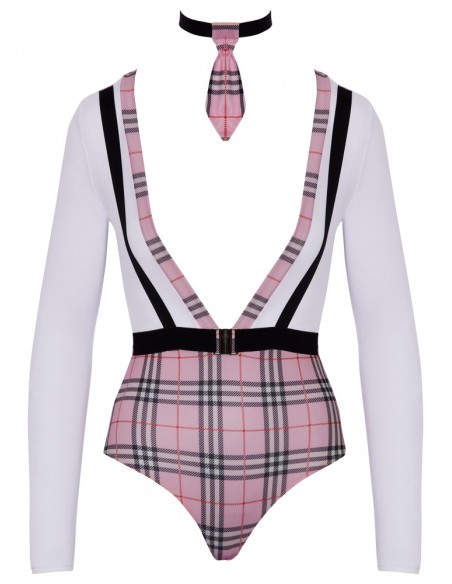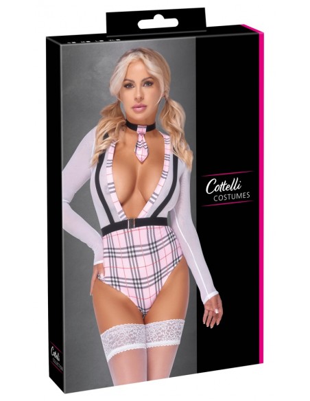 Il costume da scolaretta di Cottelli COSTUMES è composto da un body a maniche lunghe e un colletto a cravatta. Pregiato mix di tessuto a quadretti opaco e powernet bianco trasparente. Morbido ed elastico tutt'intorno per un grande comfort. Body extra scollato con fasce elastiche sul davanti in look reggicalze e cintura attaccata sul davanti con una bella chiusura. Colletto con piccola cravatta a quadretti e chiusura al collo.