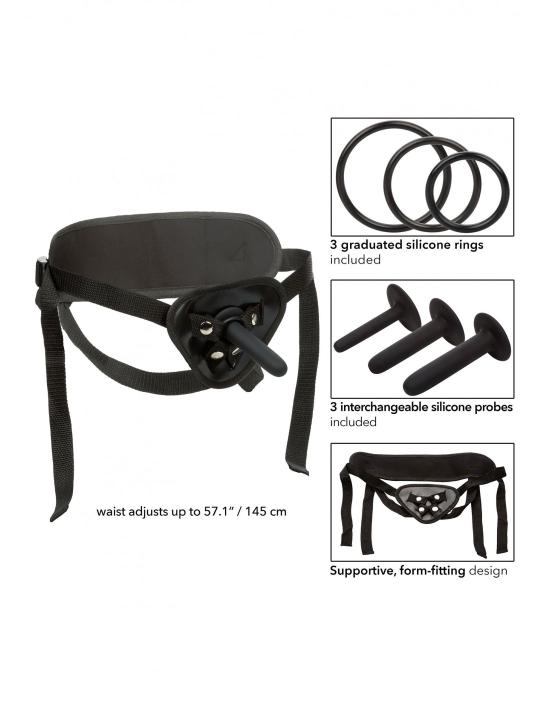 Rimani comodo anche durante i giochi di piacere più intensi grazie alla vestibilità universale, alle cinghie completamente regolabili per cosce e vita e alla fascia posteriore di supporto. Abbraccia il gioco senza inibizioni, il piacere senza freni e lascia che le tue fantasie si scatenino con questo set di imbracatura e sonda.