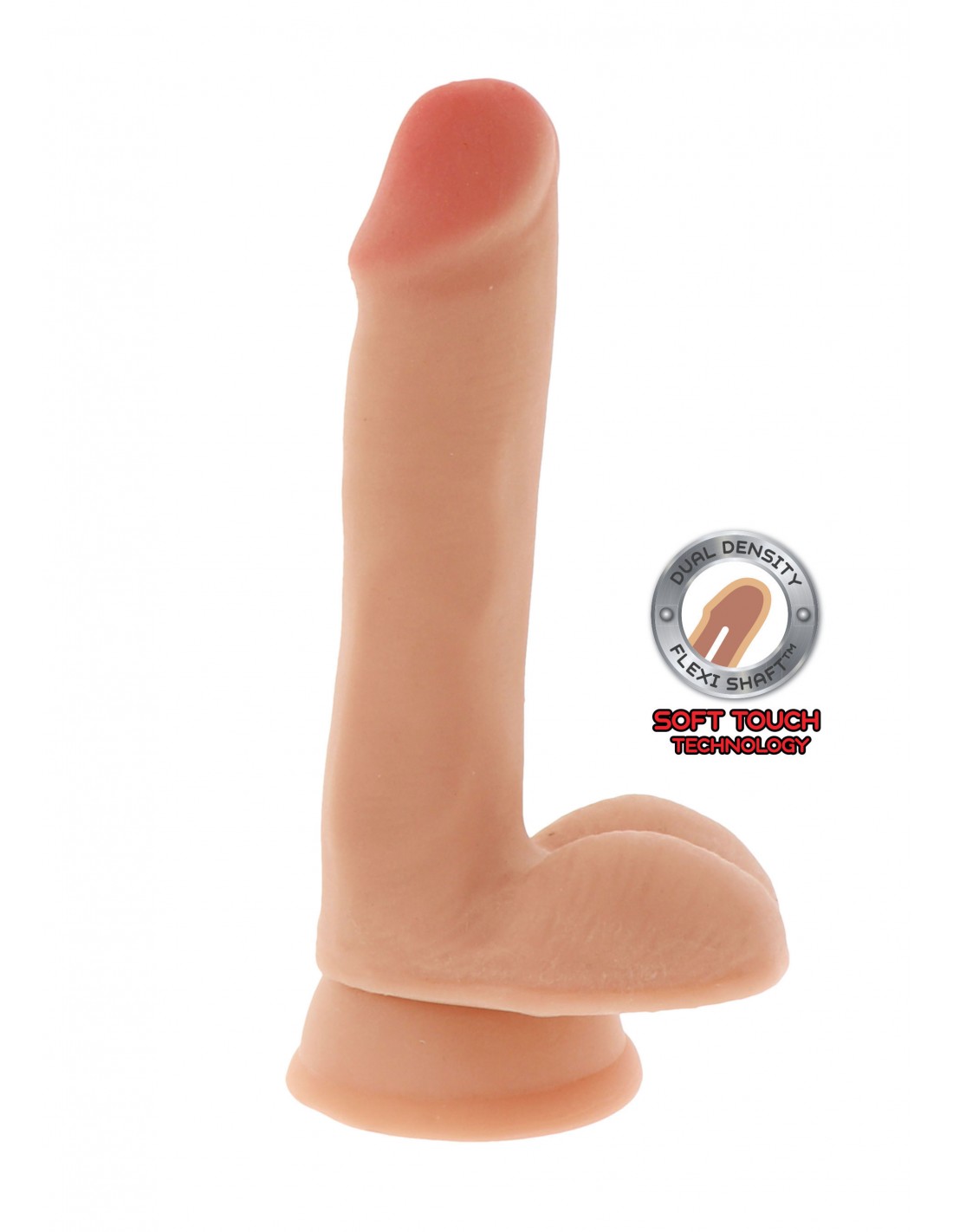 The Dual Density Cock 6 Inch Balls is a premium, life-like dildo from the Get Real by TOYJOY collection, designed to hit all your intimate hot-spots. This pleasurable dildo is a flesh-tone color and has a natural silhouette with a suction-cup base: giving you a thrilling realistic experience. The design features carefully crafted details such as plushy balls to enhance its natural appeal, whilst its dual-density material offers double the intimate fun. Its soft-touch exterior and solid core form a sensational combination that will blow you away with its indulgent feel. Made of quality TPE and packaged in a contemporary way, the Dual Density Cock 6 Inch Balls is a must-have for all lovers of realistic fun.