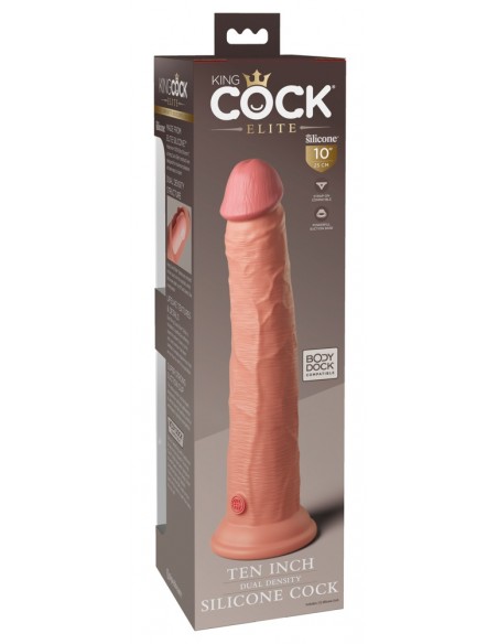 Splendido dildo 10" Dual Density Silicone Cock di King Cock Elite in look iper-realistico del pene fatto di materiale siliconico a doppia densità che si sente come la vera pelle. Il dildo stesso ha un'asta ferma, ma flessibile che assume qualsiasi posizione.