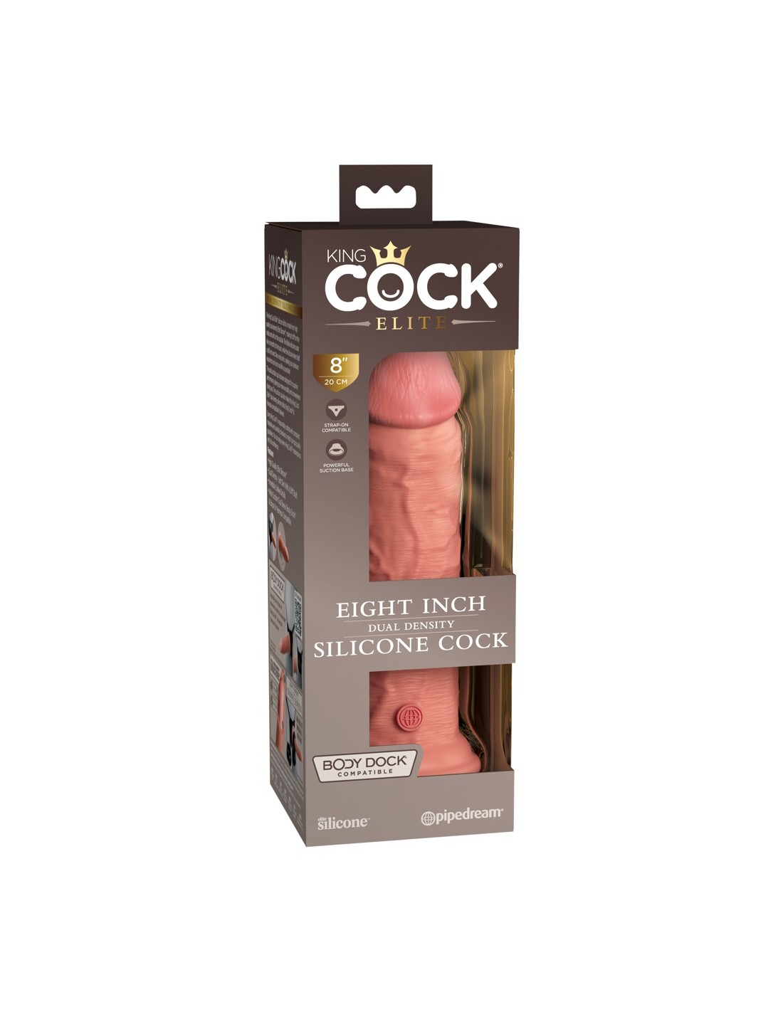 Il dildo ha una forte base di aspirazione che si attacca saldamente e in modo sicuro a qualsiasi superficie liscia per un uso senza mani. Funziona perfettamente con il Body Dock Universal Harness System di King Cock Elite - ma è anche compatibile con altri strap-on e imbracature convenzionali.