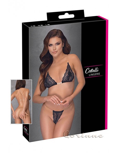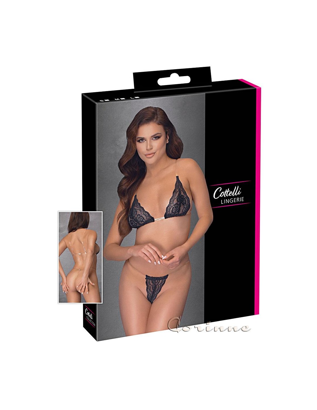 Reggiseno morbido, reggicalze e perizoma con fronte e retro con fiocco in raso S/M