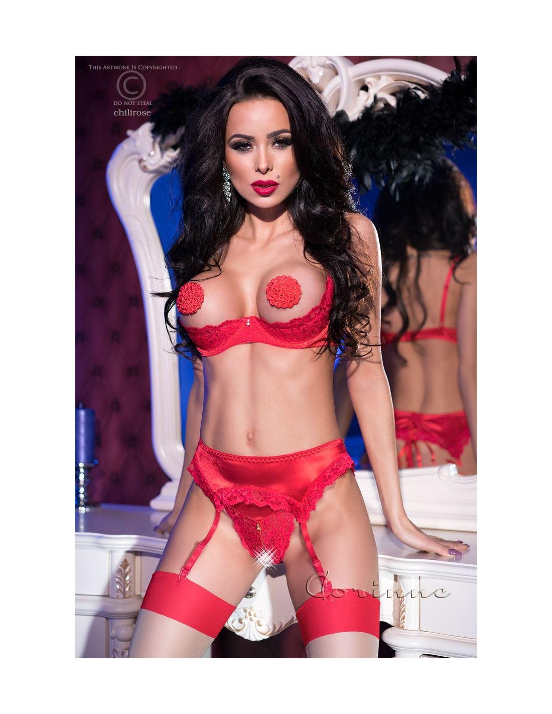 Reggiseno morbido, reggicalze e mutandine In un sensuale e delicato rosé L/XL