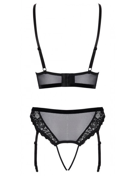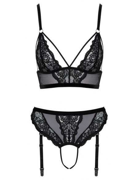 Set con bralette e perizoma con reggicalze senza cavallo
