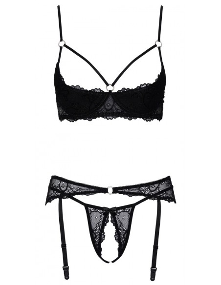 Set composto da reggiseno a Balconcino, reggicalze e perizoma senza cavallo M