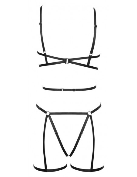 Set di imbracature nere a 3 pezzi con imbracatura per il seno e per i fianchi, compreso un piccolo perizoma. UNICA