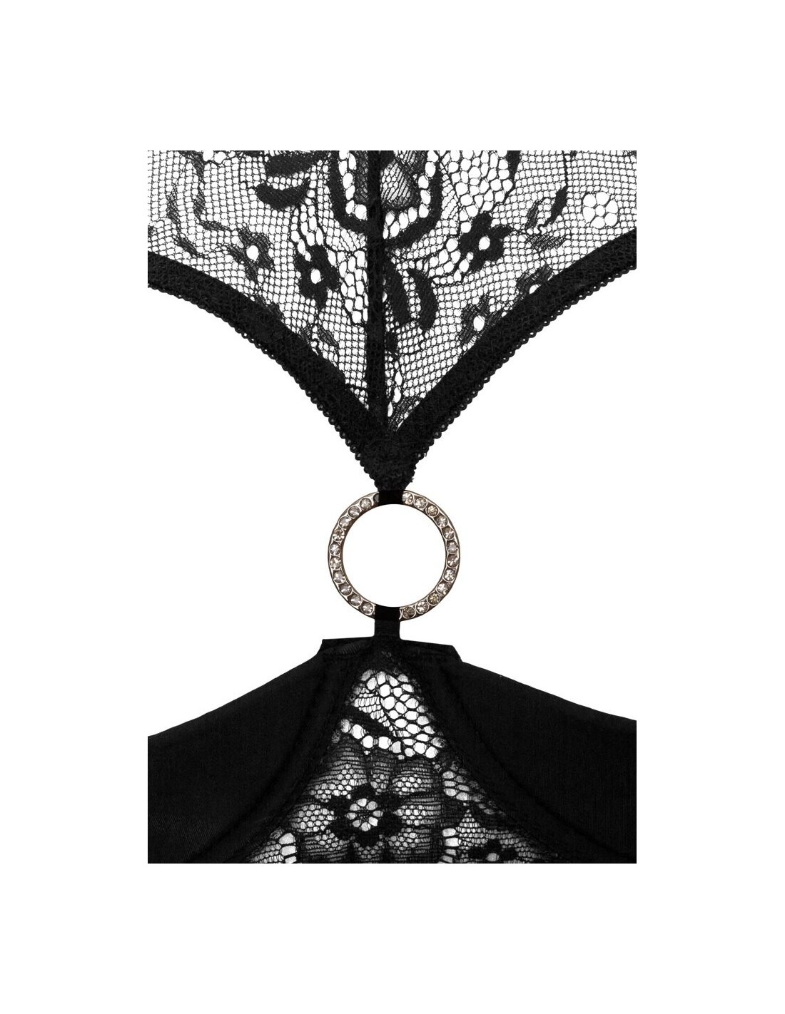 Questa bella Ebe forma il seno e lo mette in scena. Le coppe leggermente imbottite sollevano il seno e il pizzo incornicia questa vista, mentre l'anello luccicante dirige lo sguardo verso le cose più importanti. Il perizoma è inguine aperto, con orlo in pizzo e fasce flessibili.
