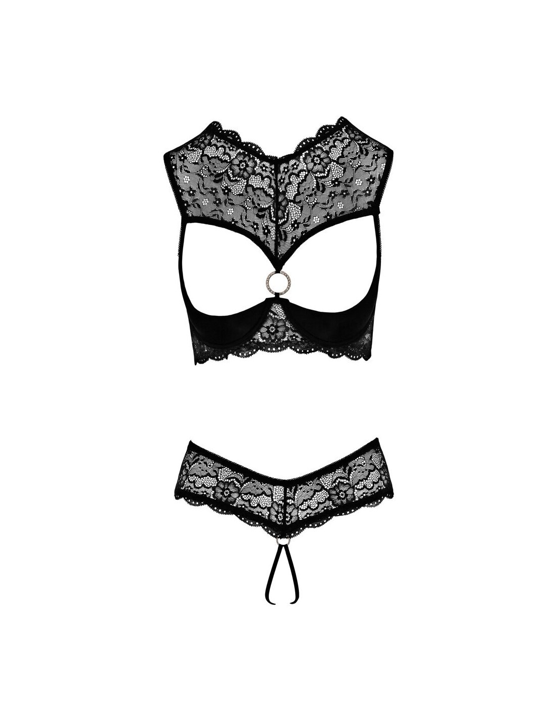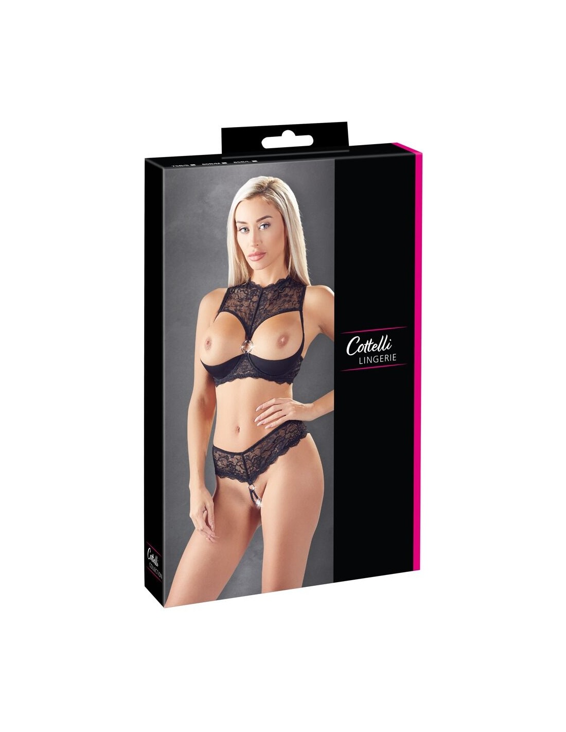 Reggiseno aperto con coppe imbottite e perizoma aperto nell'inguine L