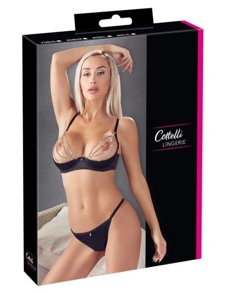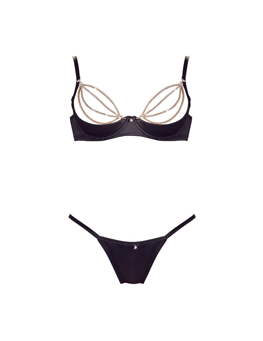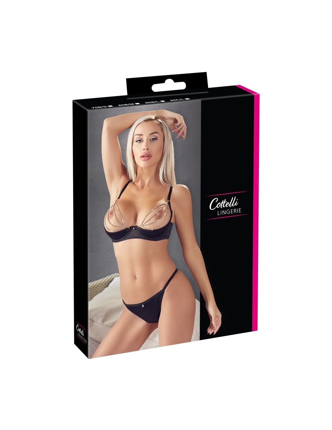 Nobile lingerie 2 pezzi in raso di seta con reggiseno a 3 catene M