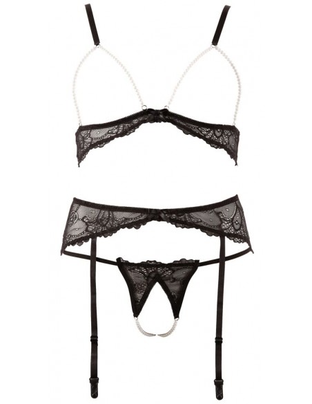Eccitante set con top a maniche lunghe senza busto e perizoma inguinale M
