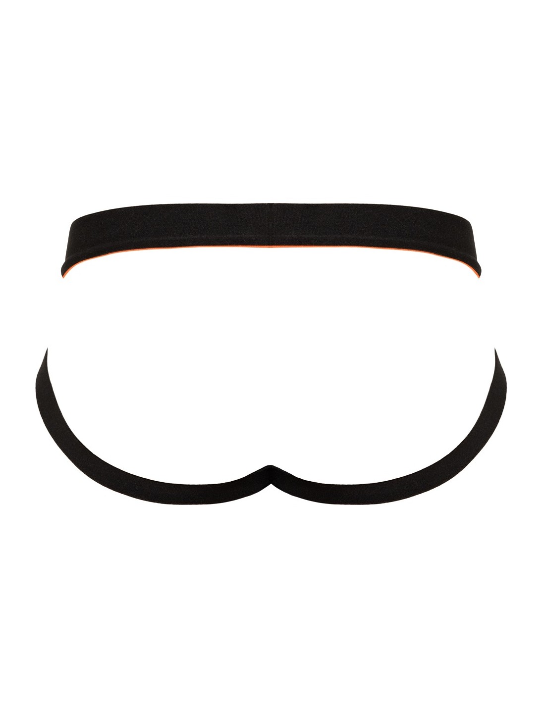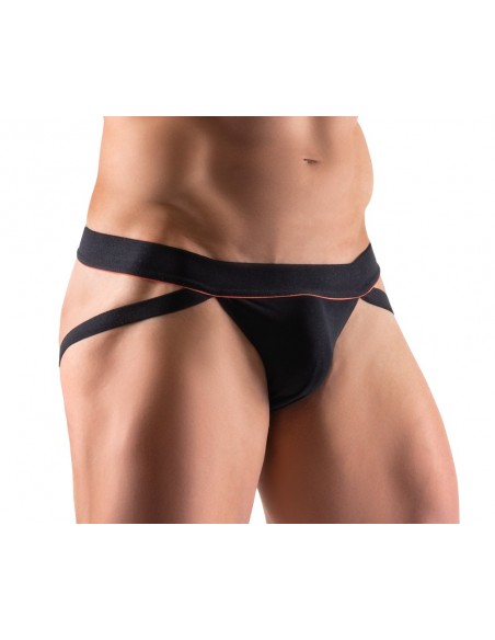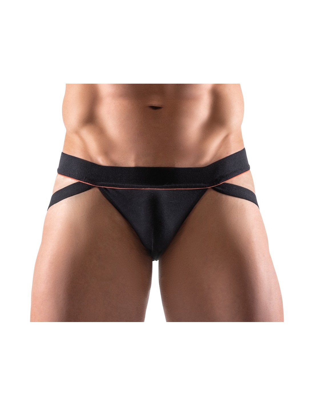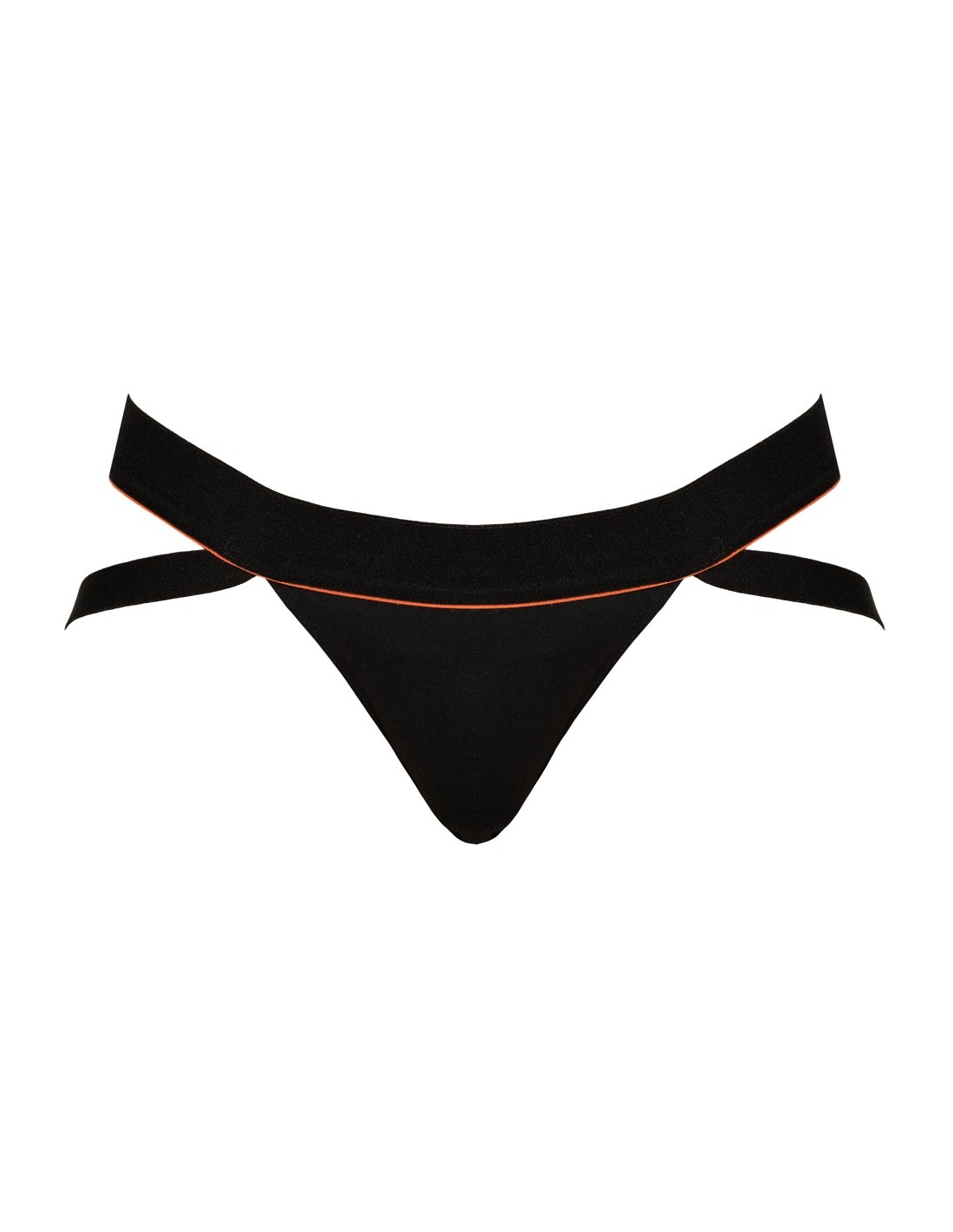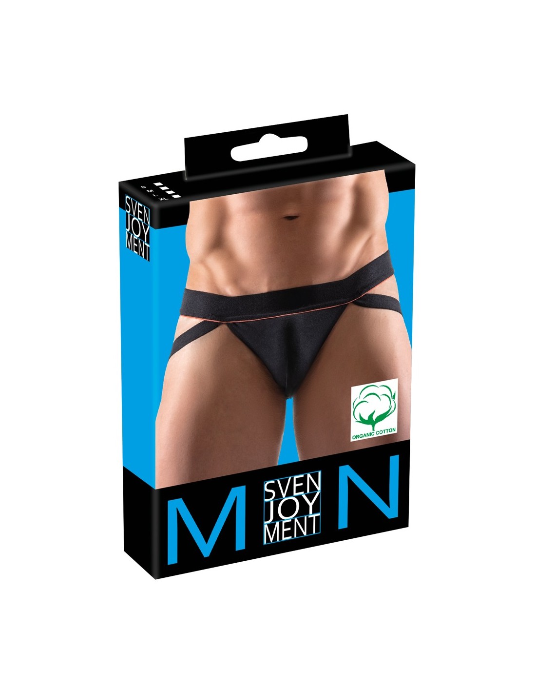 Calzino nero di Svenjoyment con vistosa striscia rossa sotto la morbida fascia elastica in vita. Sacchetto lavorato a doppio strato. Elevato comfort grazie alla perfetta vestibilità e alla qualità elastica del cotone organico - certificato Oeko-Tex.