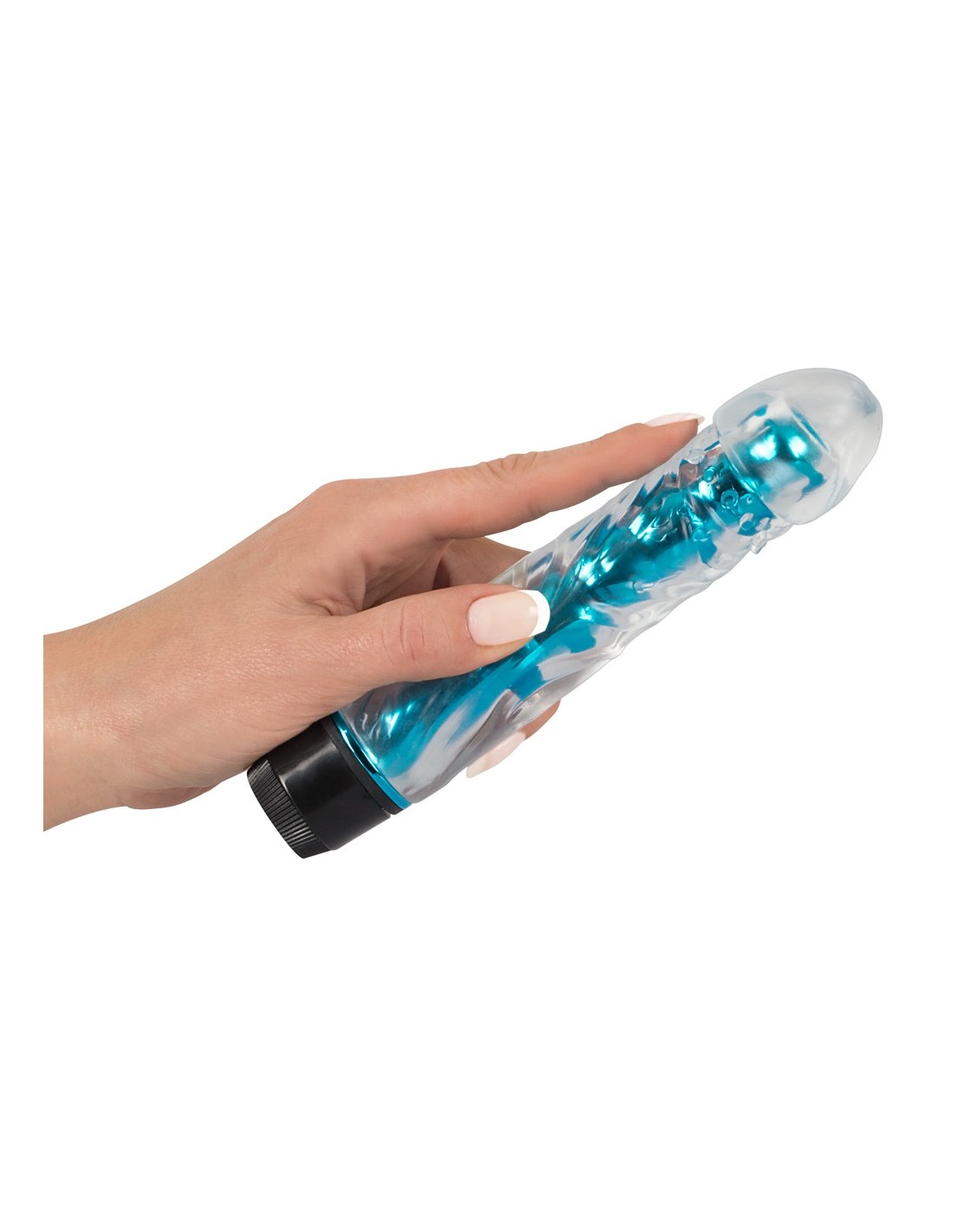 1. vibratore a più velocità con glande indicato e albero strutturato irritante. 17,4 cm di lunghezza, Ø 2,8-3,4 cm.