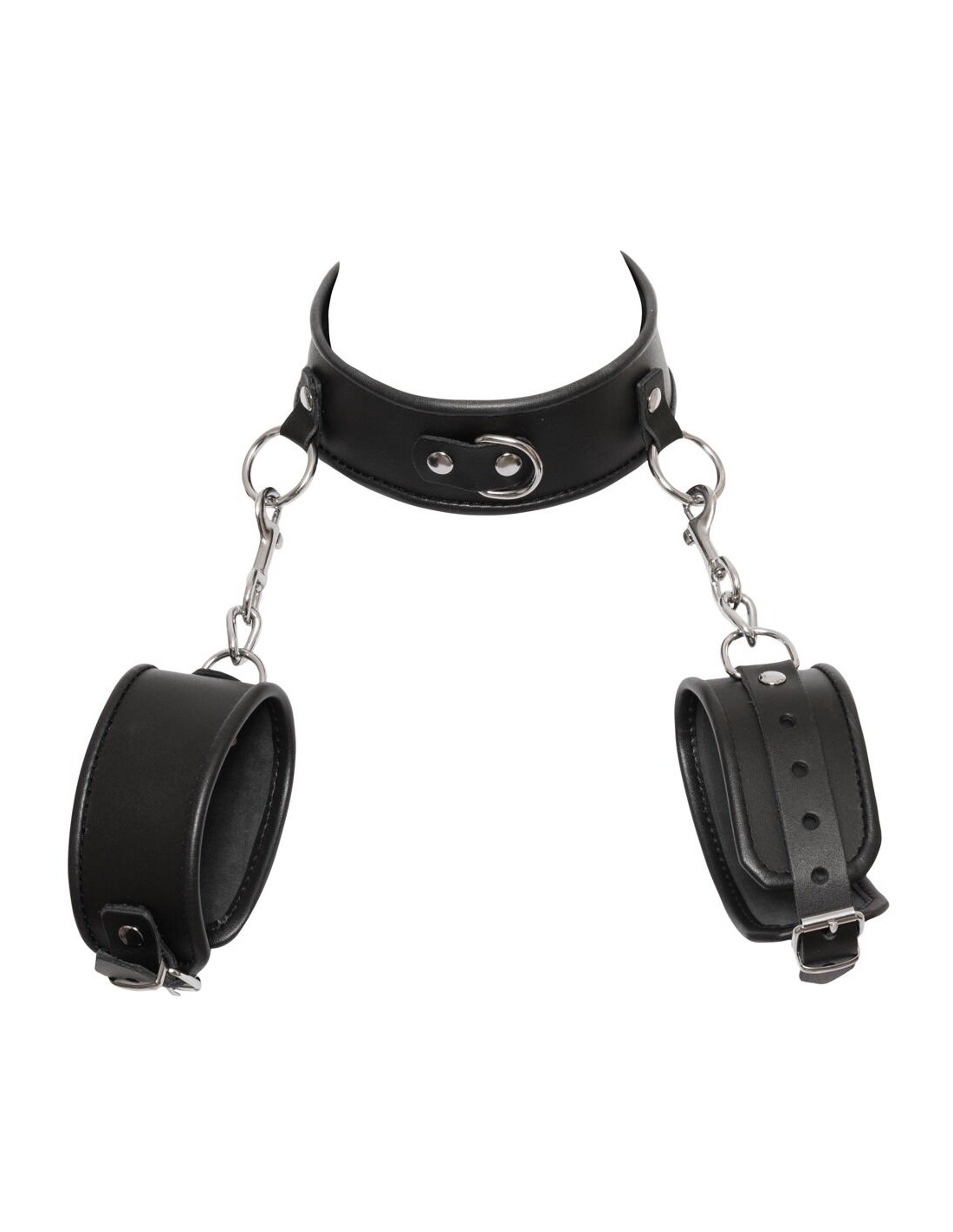 Set di costrizione in pelle di ZADO composto da una costrizione per il collo e 2 manette.