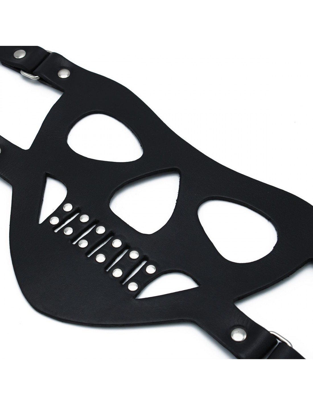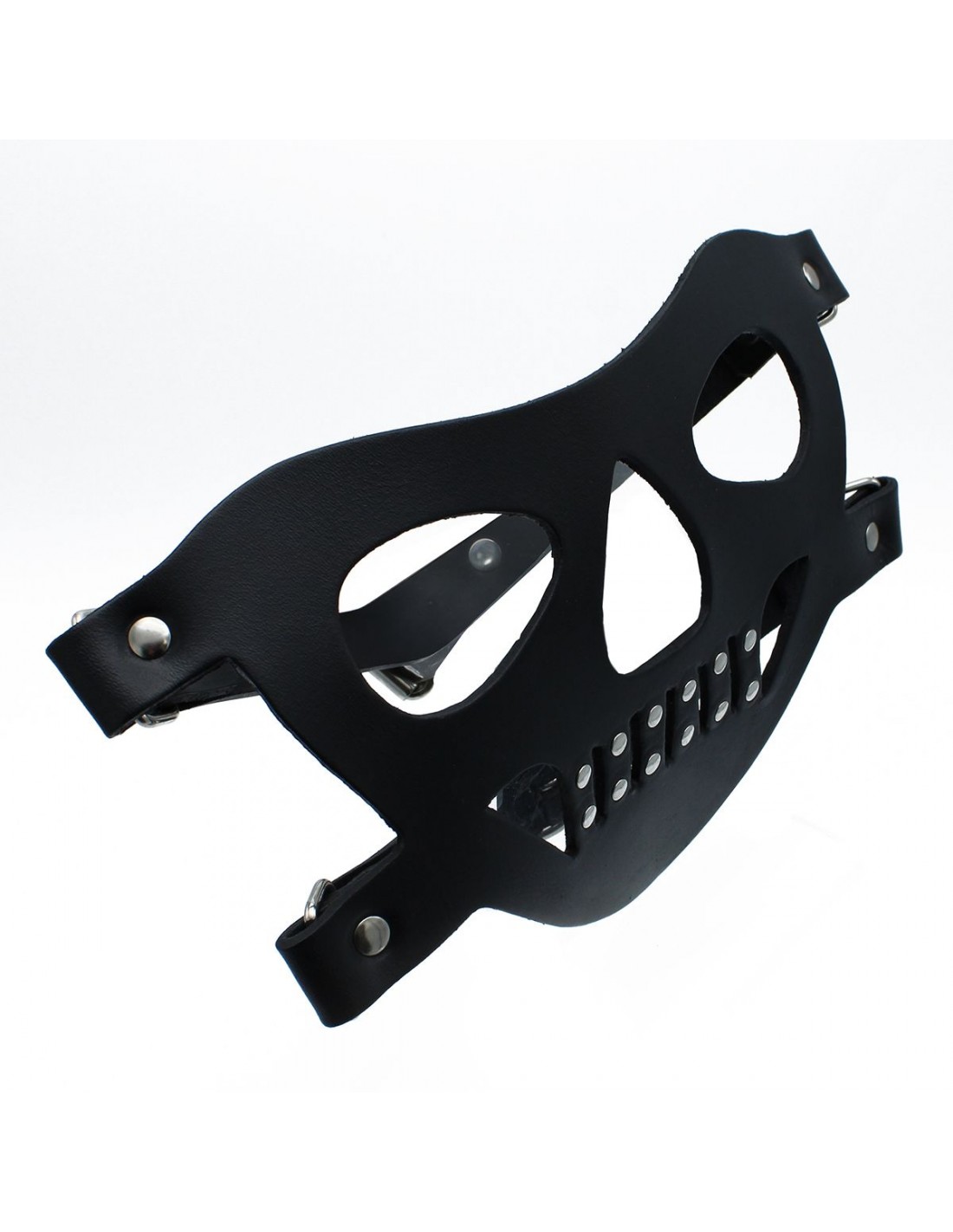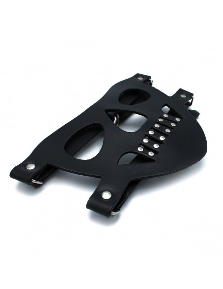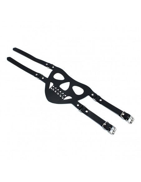 La museruola in pelle nera "The Bane" è progettata per offrire un look intenso e autorevole, rendendola perfetta per scenari di gioco di ruolo e bondage. Realizzata in resistente pelle nera, questa museruola copre la parte inferiore del viso, offrendo una vestibilità aderente e consentendo al contempo una respirazione controllata.