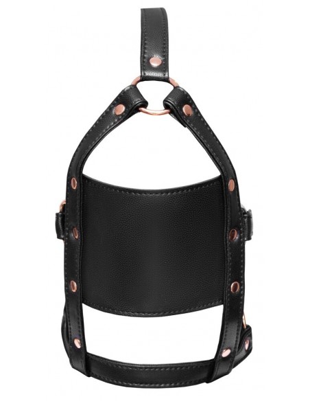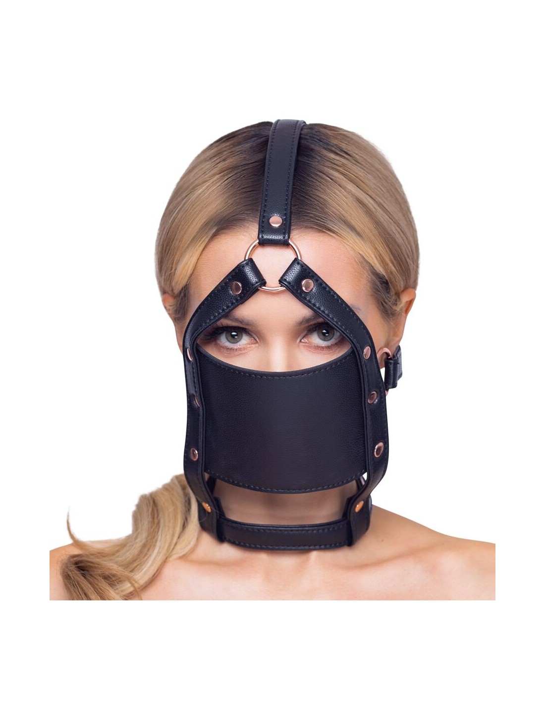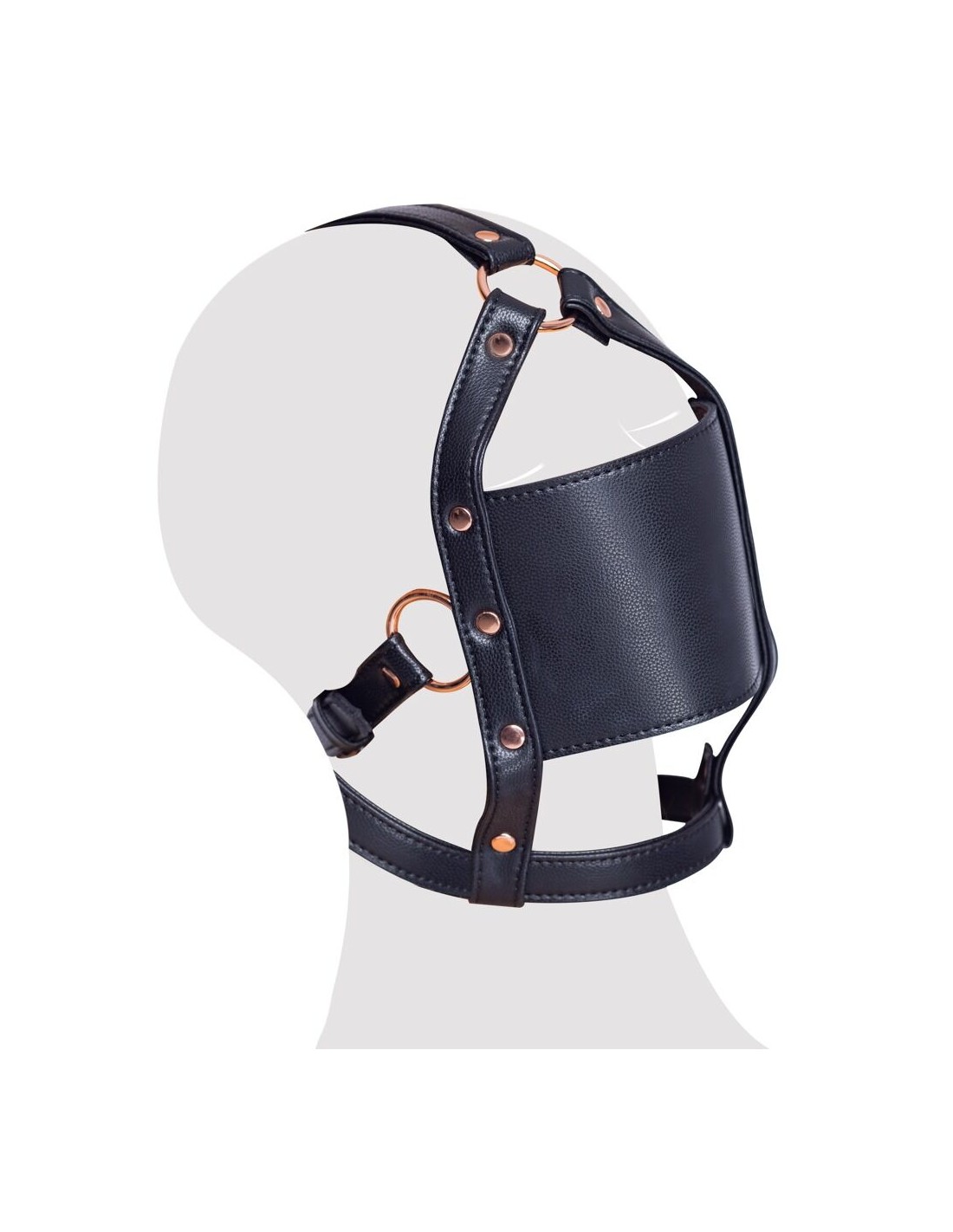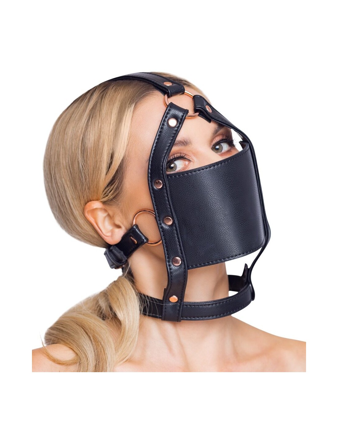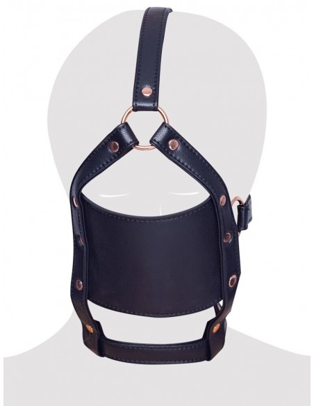 Imbracatura per la testa di alta qualità di Bad Kitty con bavaglio rotondo a prova di morso (Ø 4 cm). In elegante pelle con dettagli in metallo color oro rosa. Regolazioni multiple con fibbie di chiusura per una vestibilità ottimale.