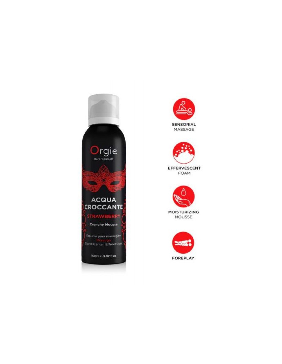 Schiuma Croccante Strawberry è una schiuma idratante con un potente effetto effervescente e con un delizioso profumo di fragola. Un prodotto esclusivo di Orgie Company, un'azienda capace di stupire con i suoi prodotti esotici e di alta qualità. Questa schiuma è rinfrescante ed effervescente e, con le sue bollicine esplosive, renderà ogni massaggio un divertente ed entusiasmante viaggio verso l'eccitazione. Prodotto clinicamente e dermatologicamente testato. Pratico formato da 150 ml con dosatore. Tenere il prodotto fuori dalla portata dei bambini e conservarlo in un luogo fresco ed asciutto. Si consiglia di non applicare il prodotto sulla pelle irritata o lesa e di sciacquare abbondantemente con acqua in caso di irritazione o contatto con gli occhi. Non ingerire. Solo per uso esterno.