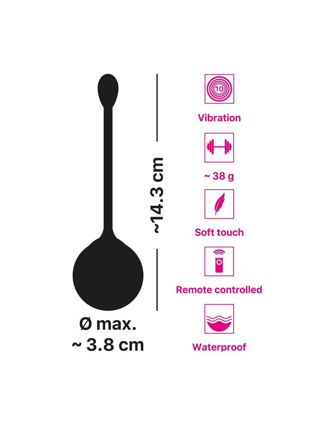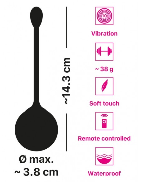 Con un peso di 38 g, questa palla vibrante è perfetta per un allenamento vaginale iniziale. Realizzata in silicone skin-friendly con una texture morbida e setosa al tatto, la palla è facile da inserire e fornisce il massimo comfort per l'allenamento/le coccole.