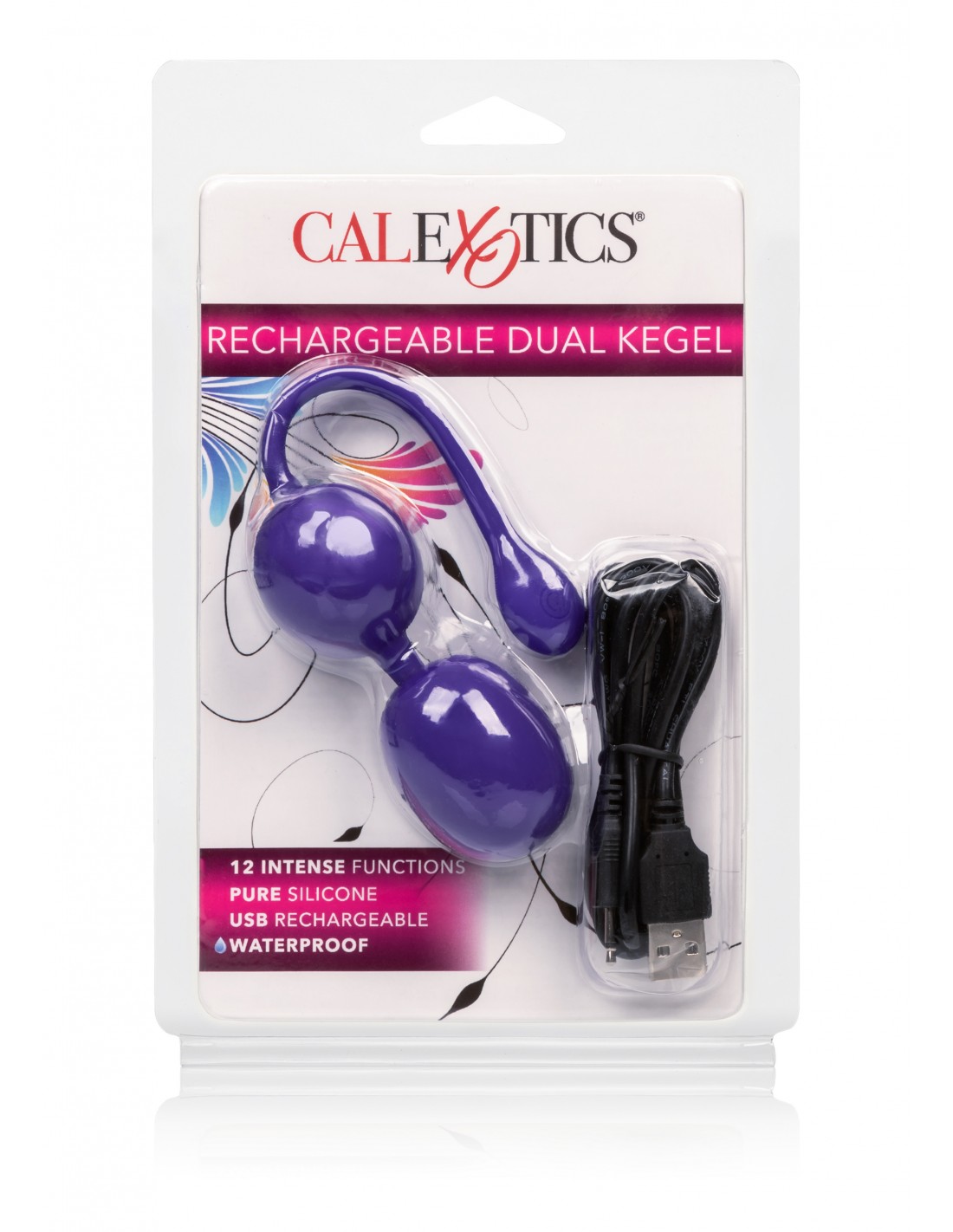 Primed and ready for your next pelvic floor workout, the Rechargeable Dual Kegel Ball is here to intensify your exercise routine. The all-women product development team of CalExotics has done it again by designing a double kegel vibrator as comfortable as it is thrilling with 12 intense vibration functions, plush silicone body and flexible retrieval cord. Recharge the premium silicone massager in 45 minutes with the provided USB charging cable to enjoy 40 minutes of vibrations. The dual-action retrieval cord also acts as an easy-push single button control with a travel lock feature for fun on-the-go. While the easy button controls the intensity and the mini vibe gives you the stimulation you want, the integrated state of the art memory chip remembers just how you like it by starting on the last function used. The self-sealing charging port and virtually seamless body let you get steamy in and out of water with this waterproof weight. The hypoallergenic premium silicone is body safe, unscented and phthalate free to keep you most sensitive spots, happy and healthy.