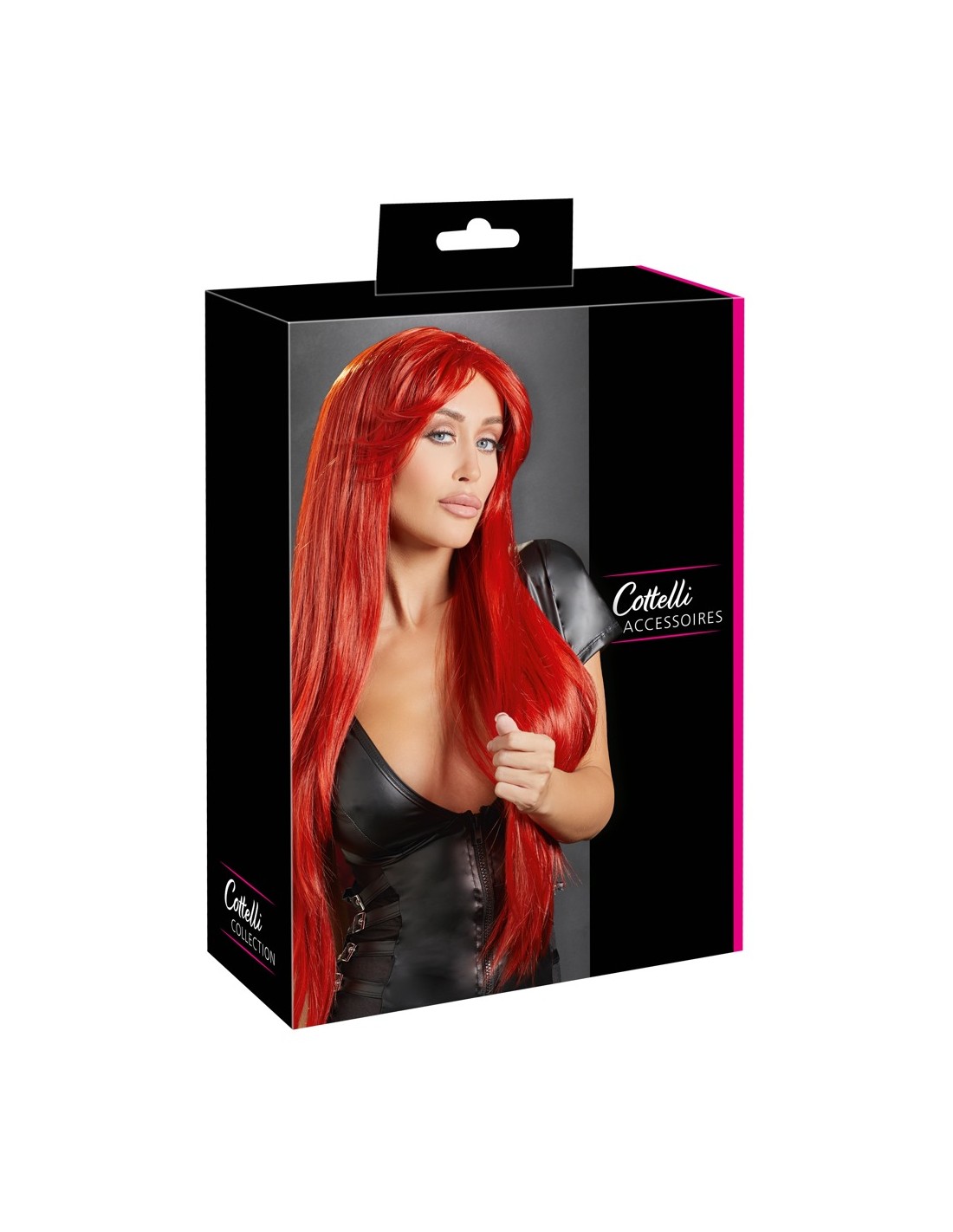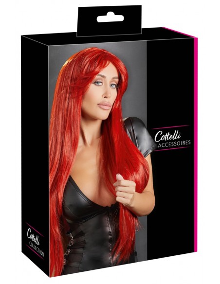 Parrucca rossa, capelli lunghi lisci con frange alla moda. La parrucca è regolabile per una vestibilità senza slittamento. Nota: Non adatto a ferri arricciacapelli e piastre - idealmente usare uno shampoo speciale per parrucche per la pulizia.