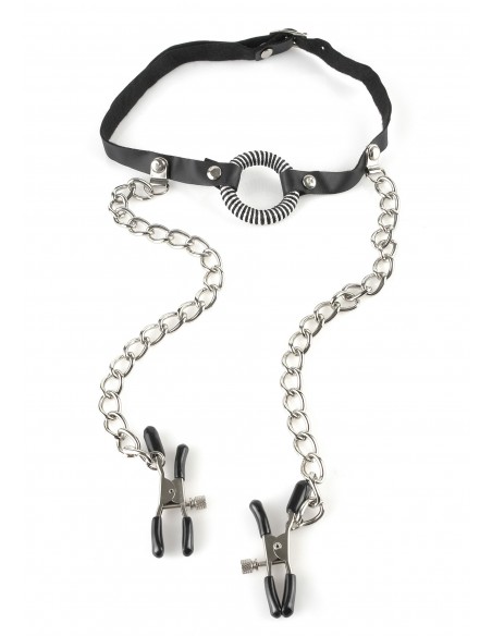 Fetish Fantasy O-Ring Gag With Nipple Clamps
