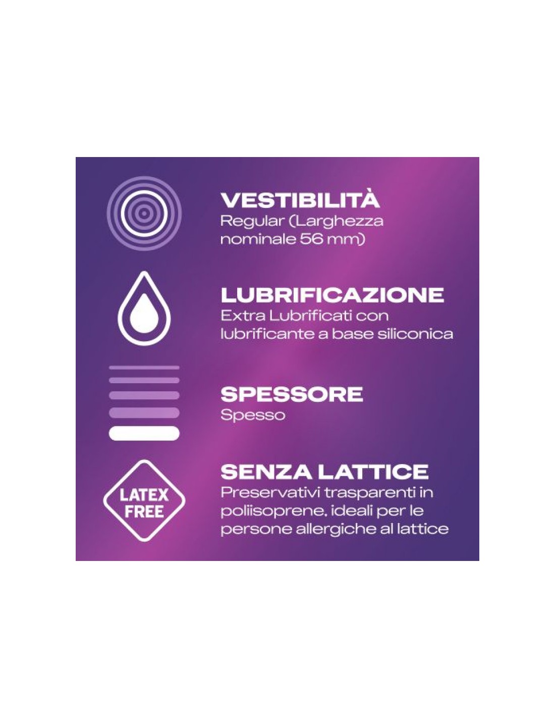 Goditi l'amore sicuro senza fastidi! La Durex ha pensato e realizzato un profilattico il cui materiale non causa allergie negli individui sensibili al lattice. Non perdere neanche un momento di passione con questo profilattico di ultima generazione. Materiale: Polyisoprene Contenuto: 6 Pz.