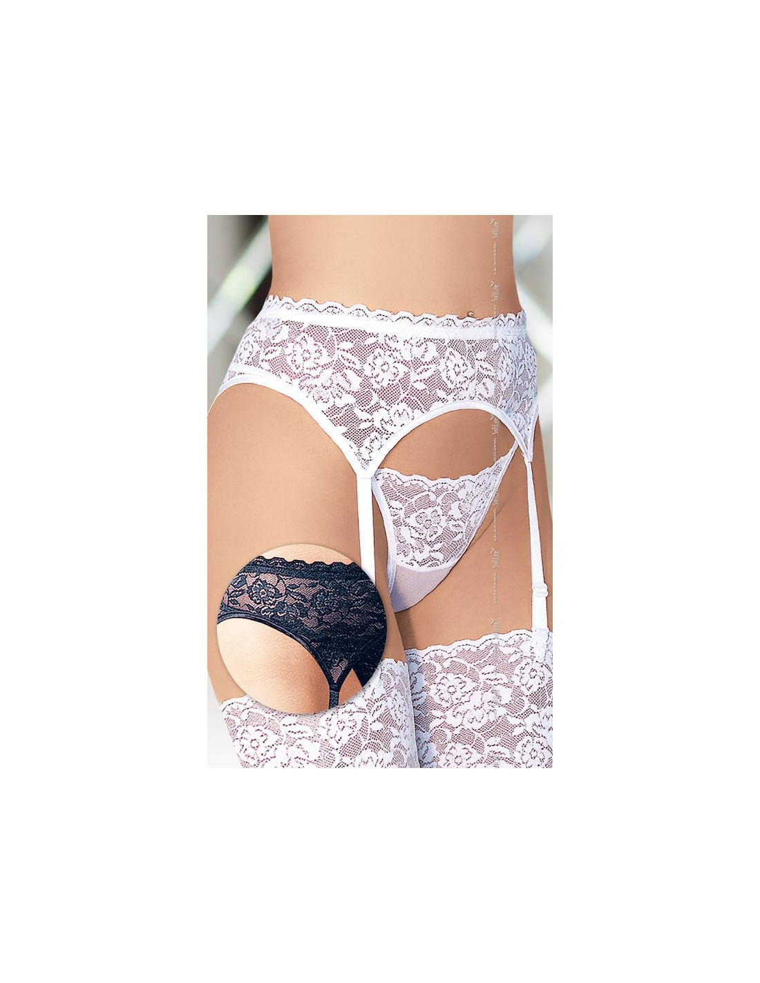 Questo modello ha un pizzo floreale sia sul reggicalze che sul perizoma. L'elastico che circonda la cintura lo rende perfetto per essere attaccato in vita o sui fianchi, a seconda di dove lo si vuole posizionare. I ganci per fissarlo alle calze sono realizzati in silicone con un sistema sicuro e di facile utilizzo. Una volta posizionato, non dovrai preoccuparti che si allenti.