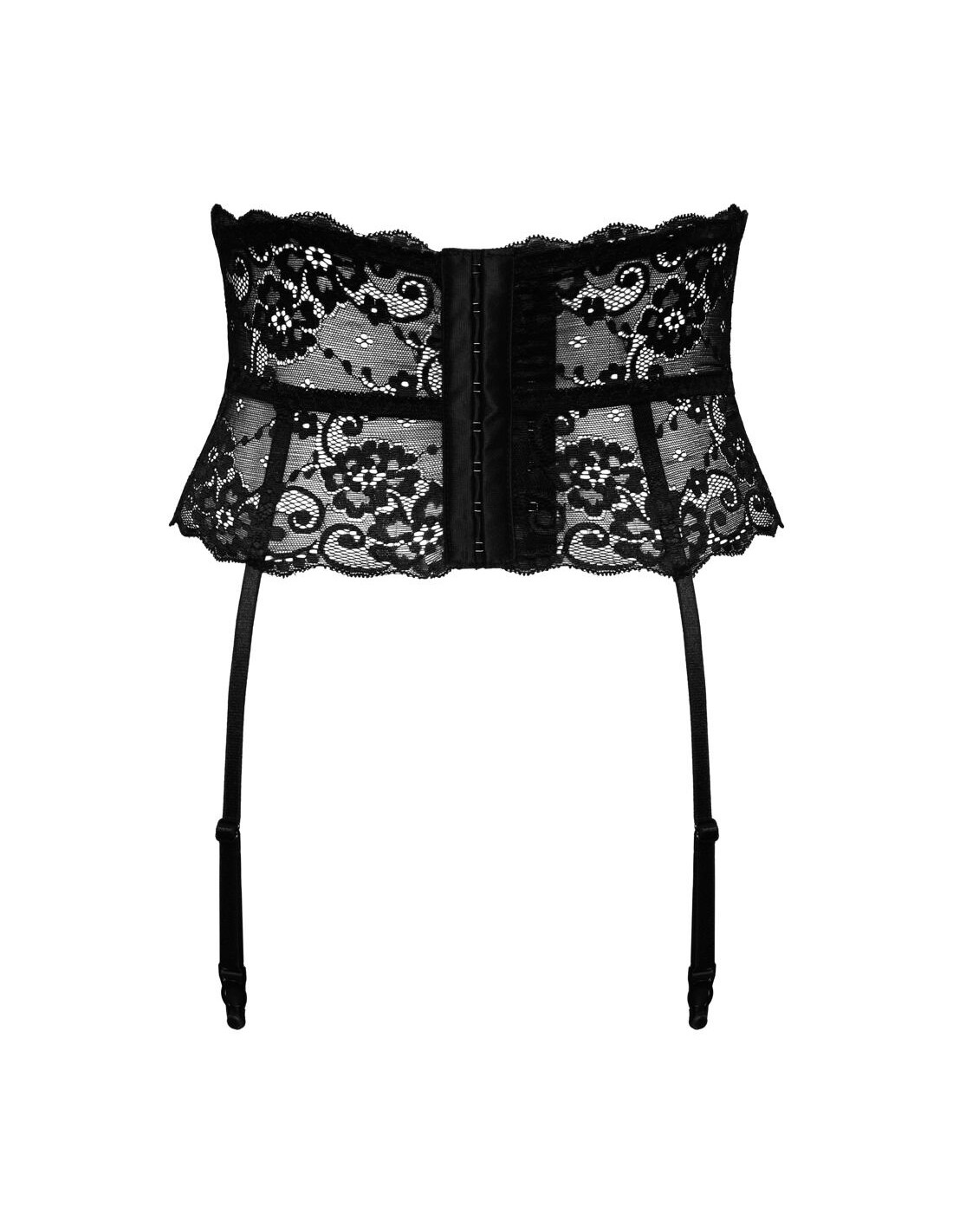 reggicalze alto 16 cm completamente realizzato in pregiato pizzo nero con 4 bretelle regolabili. M