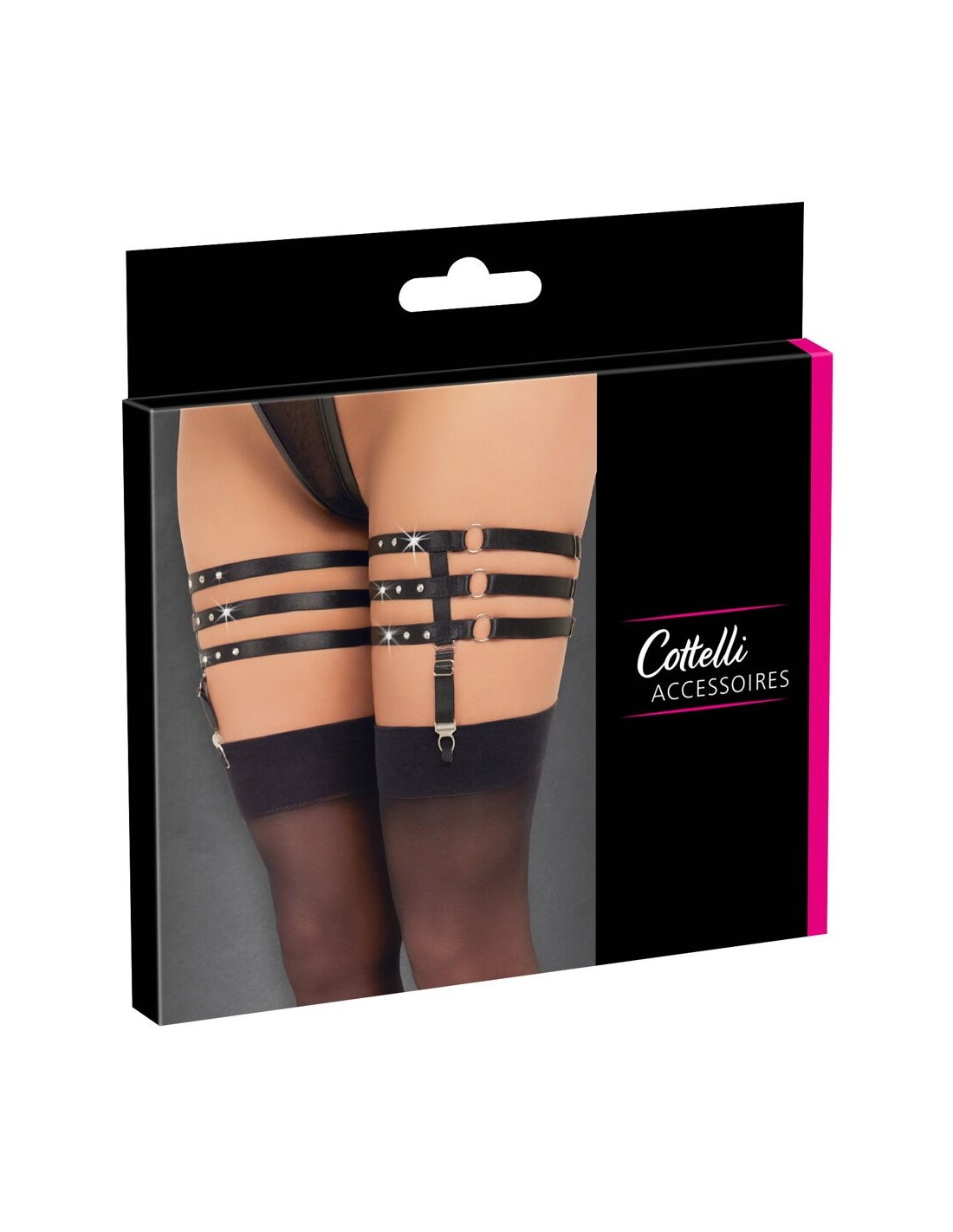 Reggicalze in pizzo nero dal taglio sofisticato con dettagli color argento S/M