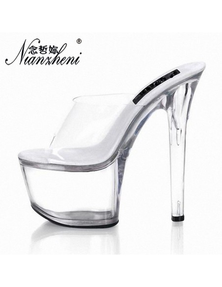 38 Sandali Con Tacco Alto A Piattaforma Per Donne, Slip On Trasparenti Per Feste E Balli