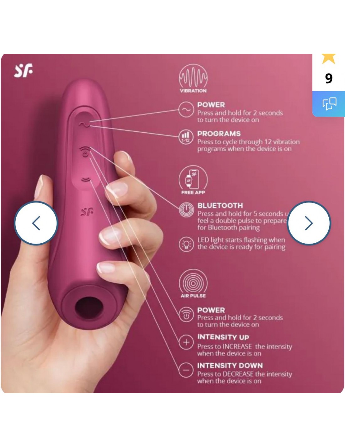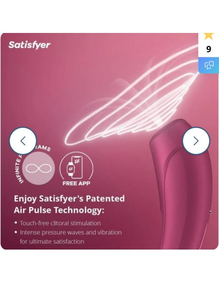 Satisfyer Curvy 1+: Estimulación del clítoris con tecnología Air-Pulse y vibraciones.