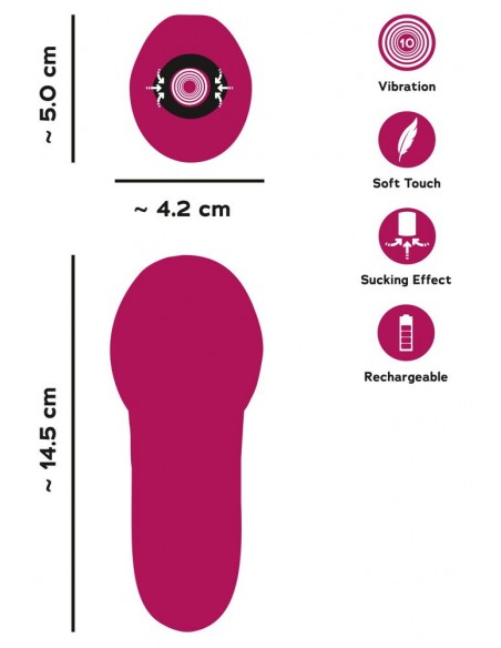 Il pratico vibratore Oral Fun di You2Toys vi vizierà con la sua bocca che succhia profondamente e la sua potente lingua vibrante. Le labbra in silicone si appoggiano dolcemente alle parti più intime e fanno pulsare i punti caldi con 3 modalità di aspirazione. La morbida lingua vibrante intensifica lo stimolante massaggio di aspirazione. Sono disponibili ben 10 diverse modalità di vibrazione per un uso piacevole. Divertimento con aspirazione vibrante per un nuovo climax, da soli o in coppia!
