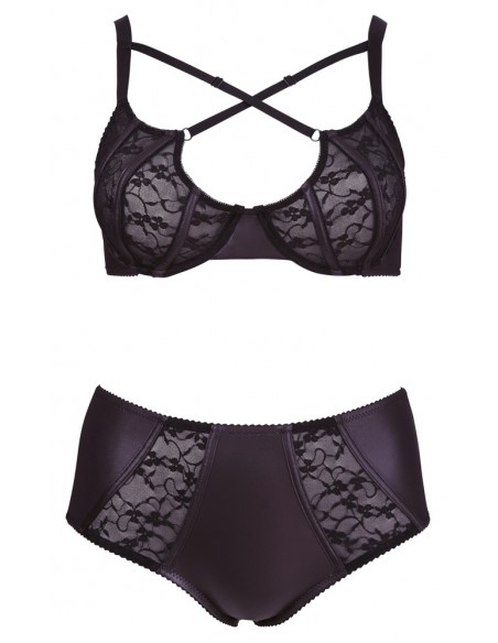 Reggiseno con ferretto e mutandine in nero elegante XL