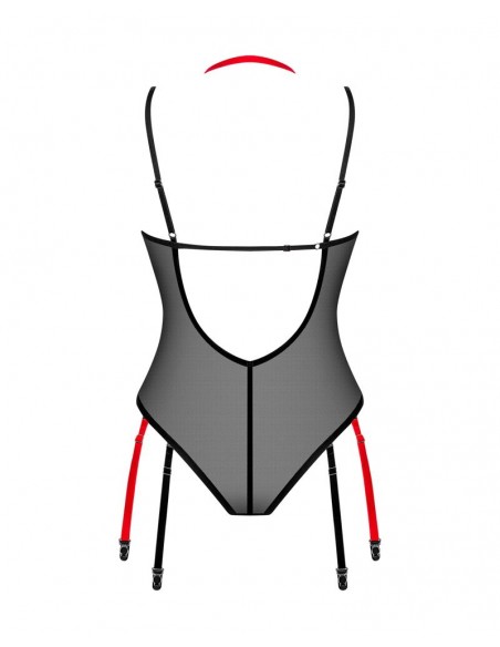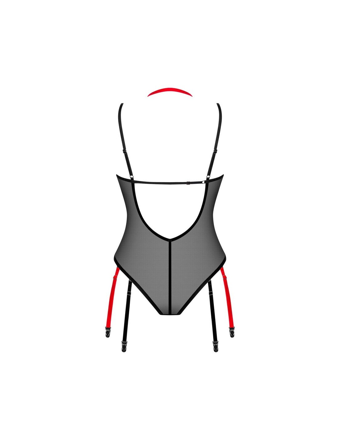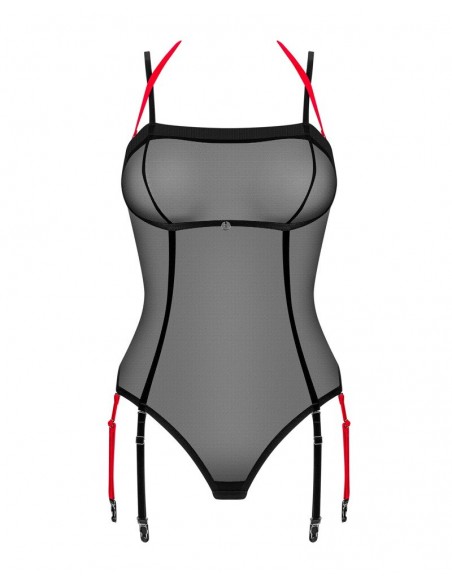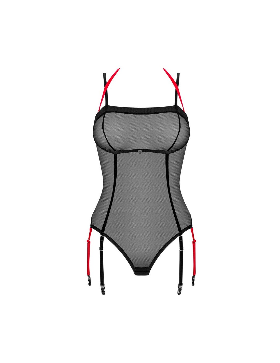 Il body semitrasparente Glandez di Obsessive permette di esporre rapidamente il seno grazie al collo alto rimovibile. Anche le bretelle sono staccabili e rendono il body versatile.