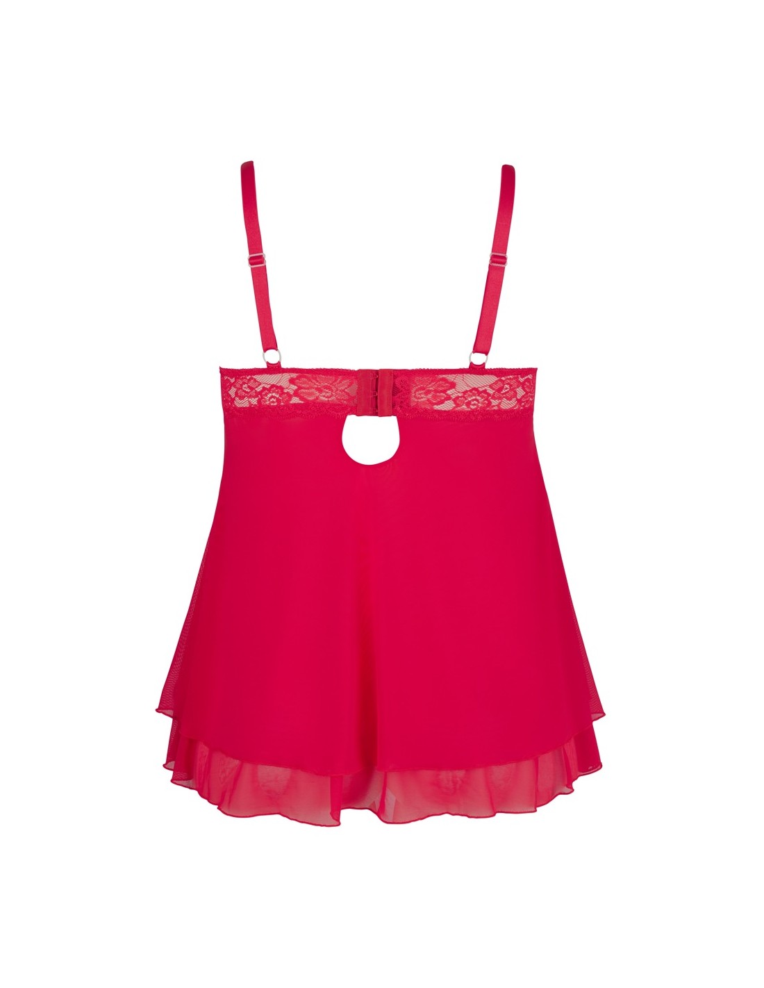 Babydoll rosso con passanti di legatura sulle coppe in pizzo XL