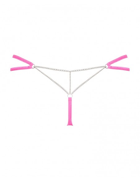 Perizoma Chainty di Obsessive, di colore rosa, con catena decorativa sui glutei. Realizzato in morbido materiale elasticizzato con doppie cinghie elastiche come fascia in vita.