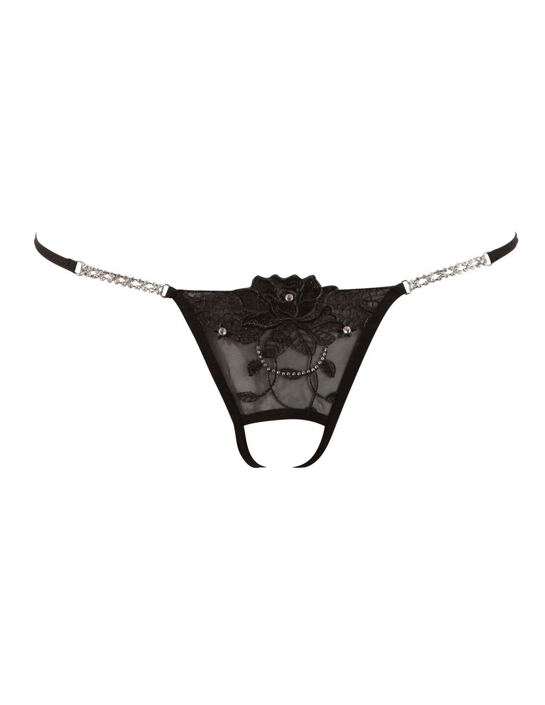 Tanga Nero con ricami e pietre strass S/M