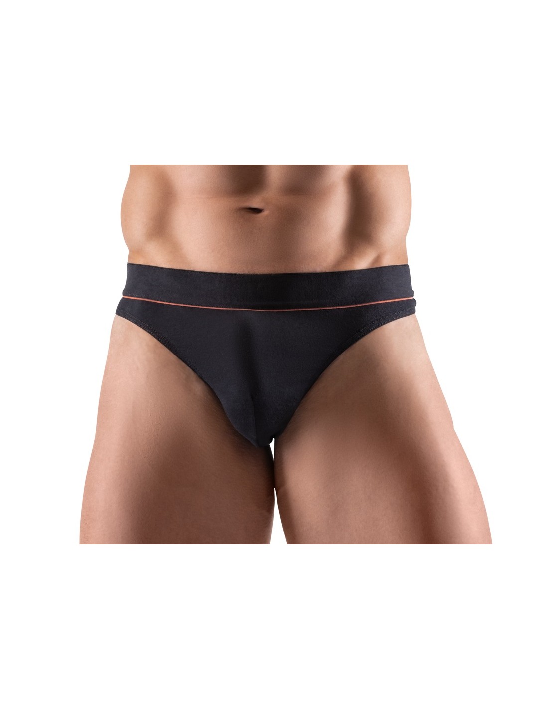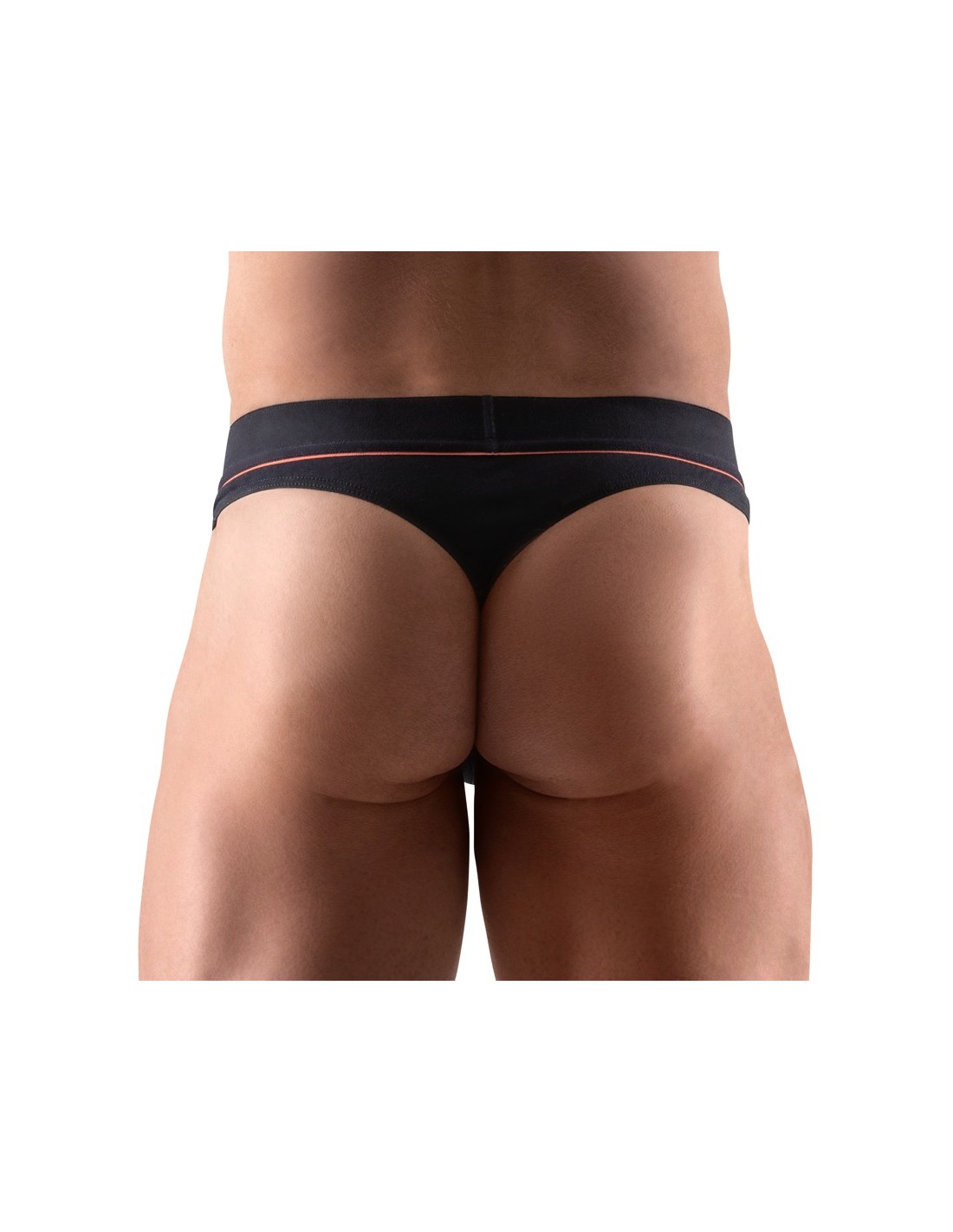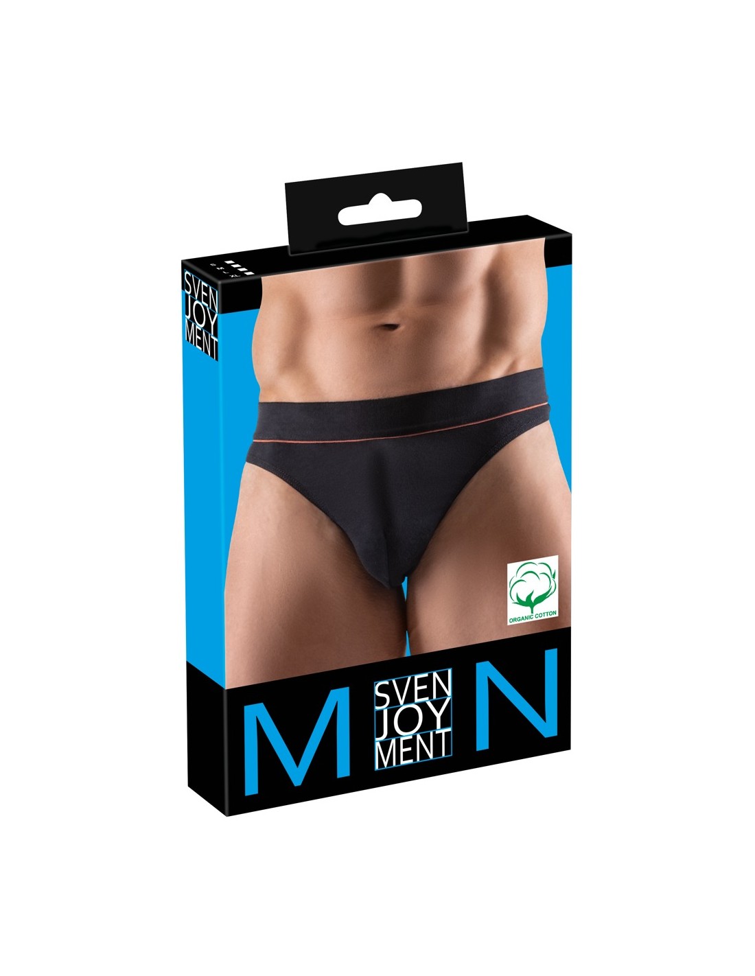 Riostringer nero di Svenjoyment con una vivace striscia rossa sotto la morbida fascia elastica in vita. Sacchetto lavorato a doppio strato. Elevato comfort grazie alla perfetta vestibilità e alla qualità elastica del cotone organico - certificato Oeko-Tex.