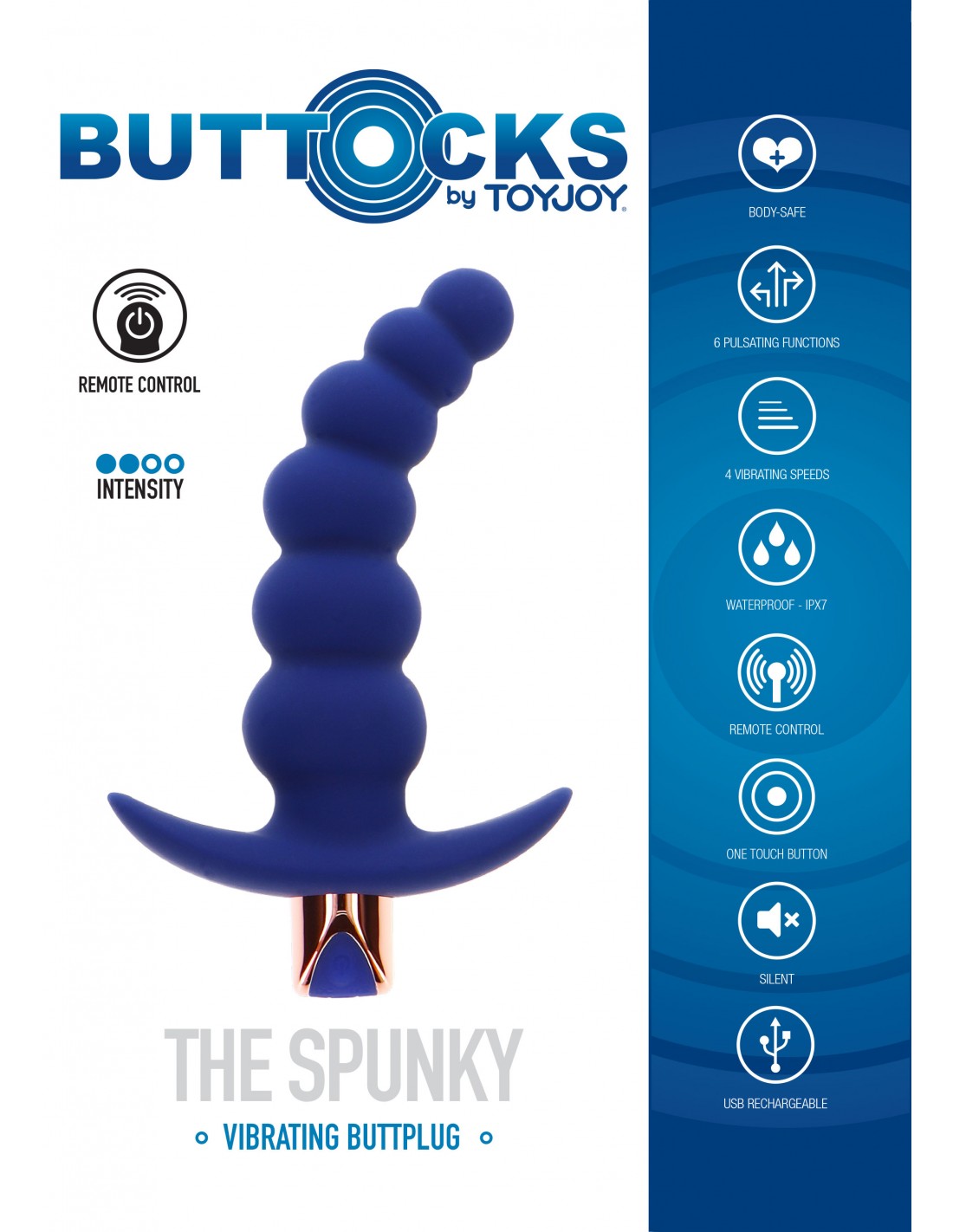 Lo Spunky è un plug anale vibrante e dispone di un potente motore con 6 diverse modalità di vibrazione e 4 velocità di vibrazione. Ogni modalità offre vibrazioni profonde, che possono essere facilmente controllate sull'oggetto o con il telecomando incluso. Buttocks di TOYJOY è una linea premium di plug anale ad alte prestazioni, creata con una varietà di caratteristiche speciali per aumentare il tuo piacere anale. Buttocks di TOYJOY è la scelta perfetta per la stimolazione anale di livello successivo.