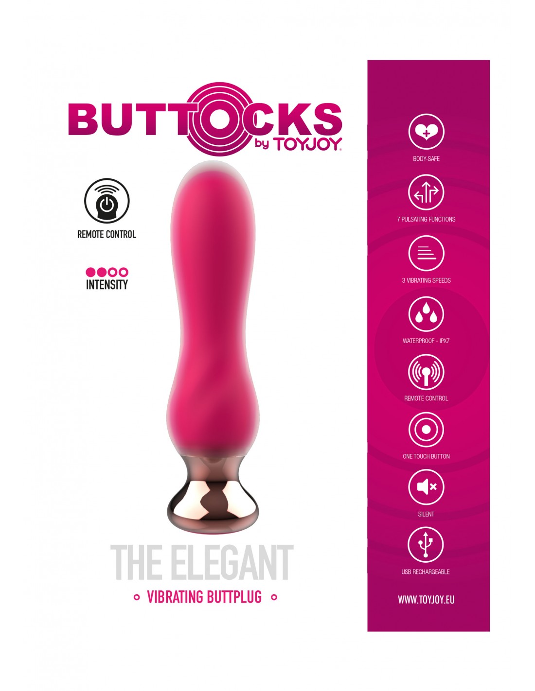 Il Elegant è un plug anale rosa gelido e vibrante e dispone di un potente motore con 7 diverse modalità di vibrazione e 3 velocità di vibrazione. Ogni modalità offre profonde vibrazioni rombanti, che possono essere facilmente controllate sull'oggetto o con il telecomando incluso. Buttocks di TOYJOY è una linea premium di butt plug ad alte prestazioni, creata con una varietà di caratteristiche speciali per aumentare il tuo piacere anale. Buttocks di TOYJOY è la scelta perfetta per una stimolazione anale di livello superiore.